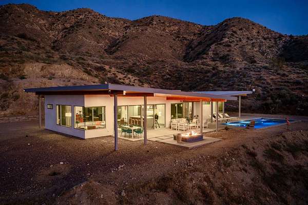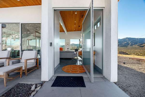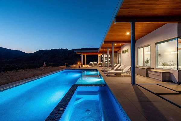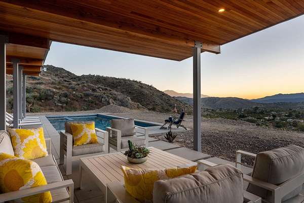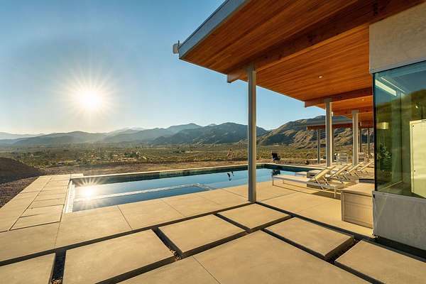 Perched high on nearly nine acres across three parcels, this striking 2022-built modern home offers a rare sense of space, privacy, and connection to the surrounding landscape. Expansive walls of glass frame sweeping panoramic views, allowing natural light to pour in while seamlessly blending indoor and outdoor living--creating a daily backdrop of dramatic sunsets and endless open sky. The elevated hillside setting enhances both tranquility and perspective, giving a true retreat-like feel while still providing the comfort of a thoughtfully designed, newer construction home. Evenings invite quiet moments of stargazing, where the vast desert sky becomes part of the experience. The saltwater pool and spa elevate outdoor living, offering a refreshing and low-maintenance way to relax, entertain, and unwind against a stunning natural canvas. Every element of this property is designed to deliver a lifestyle of serenity, beauty, and modern comfort--where privacy, views, and architectural elegance come together effortlessly.