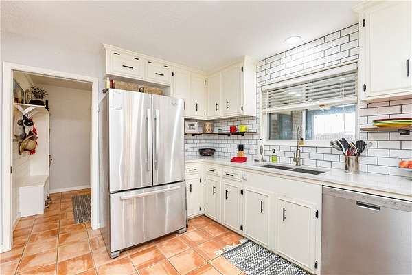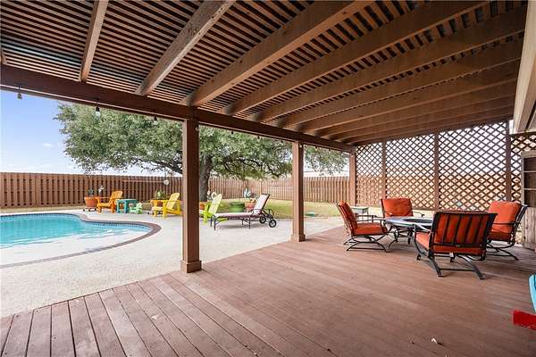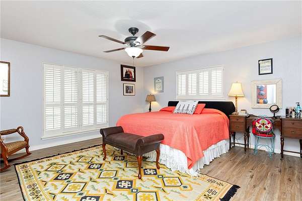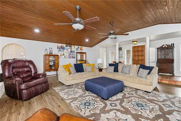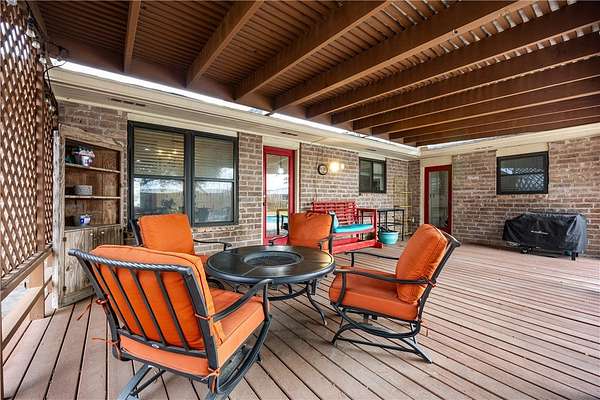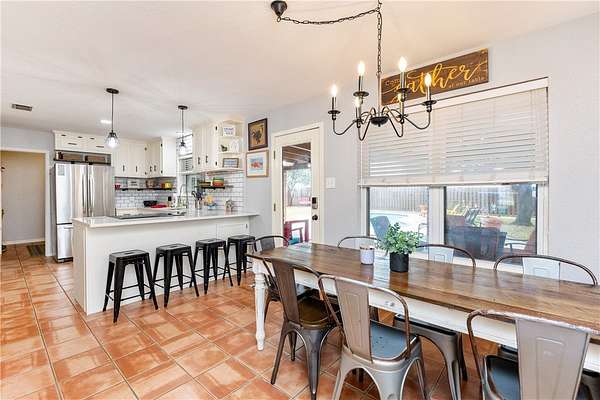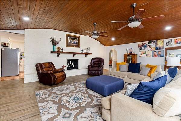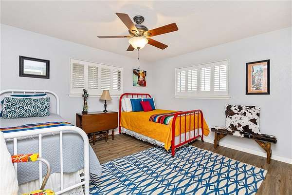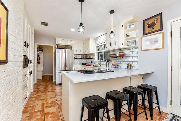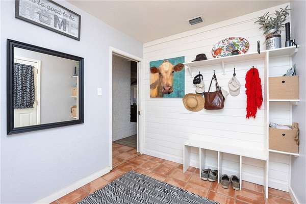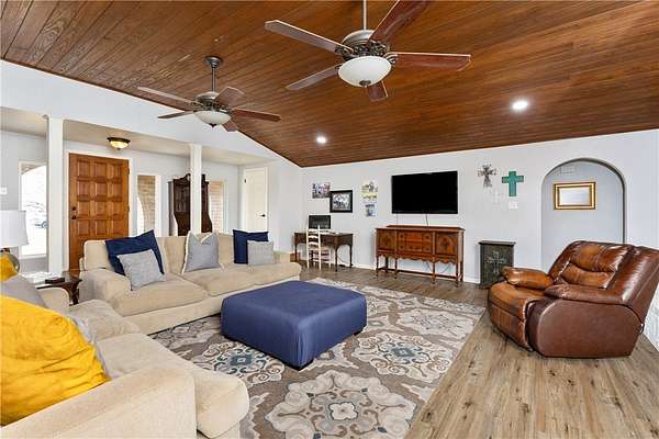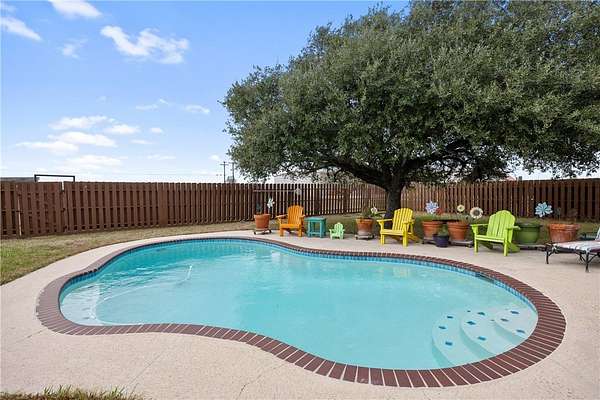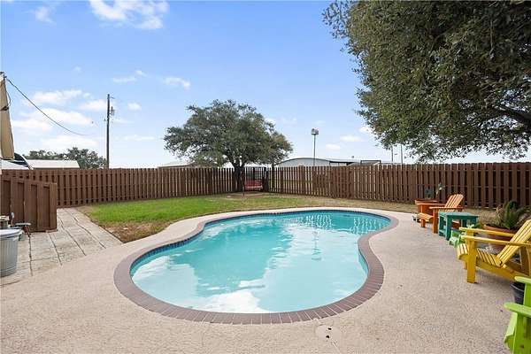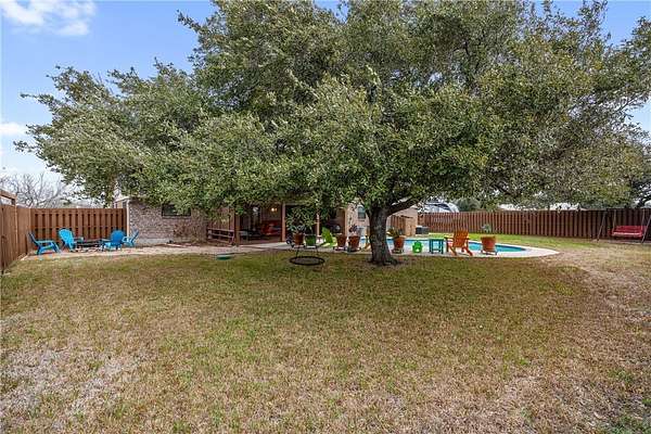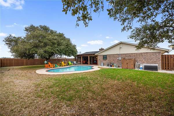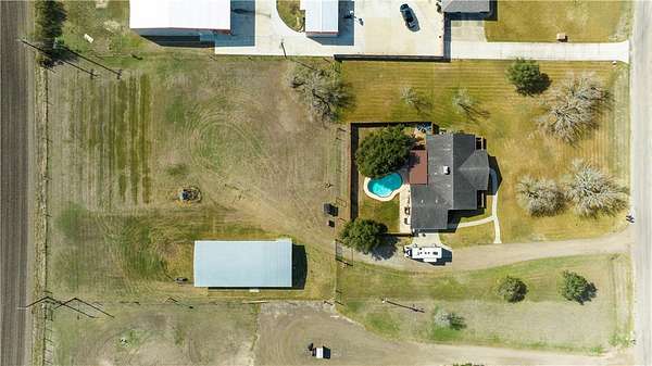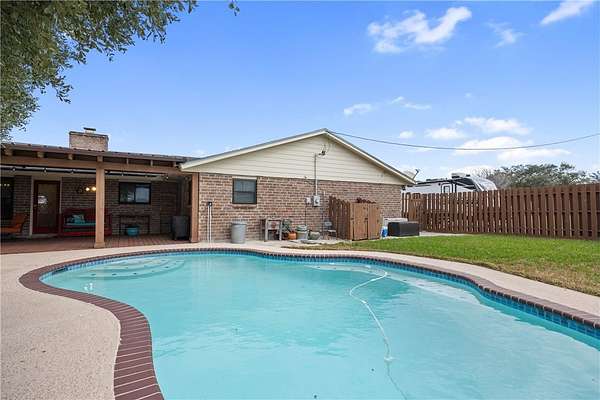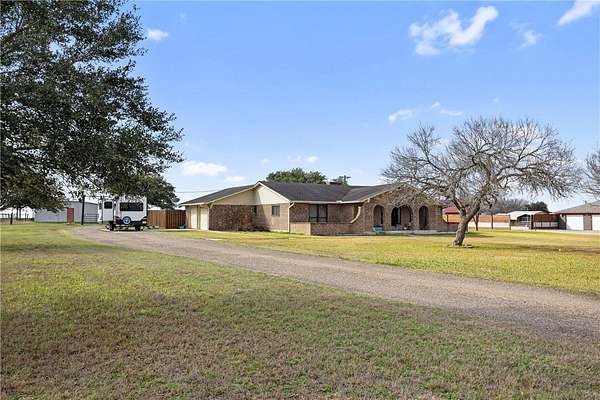 COUNTRY CHARMER! Nestled in the secluded Rancho Alegre subdivision within Banquete ISD, this stunning home sits on 2+/- acres of serene countryside. Surrounded by mature trees and open spaces, it's the perfect setting for pets, FFA livestock projects, or simply enjoying nature. Inside, the spacious living room welcomes you with gorgeous vinyl plank floors, stunning wood plank ceiling and a wood-burning fireplace creating a cozy retreat. The beautifully designed kitchen blends style and functionality, featuring sleek quartz countertops, a classic subway tile backsplash, and ample cabinetry. The thoughtfully designed layout flows seamlessly into the adjacent dining area, an ideal space for entertaining or enjoying intimate meals. Great master suite offers ample space, natural light, and a serene ambiance with ensuite bath boasting a stand-alone shower and walk in closet. Bedrooms 2 & 3 share a Hollywood bath. Additional highlights include plantation shutters, an adorable mudroom with a charming shiplap accent wall and a laundry room with space for a desk making it an ideal place for a home office setup. Step outside to your private oasis, complete with a refreshing pool with privacy fenced area and plenty of space to unwind. Head out to the back acreage with wire fencing and a fabulous barn complete with storage, feed room, and animal pens that include water and electricity-perfect for livestock or hobbies. This fabulous country home has it all-space, charm, and endless possibilities!