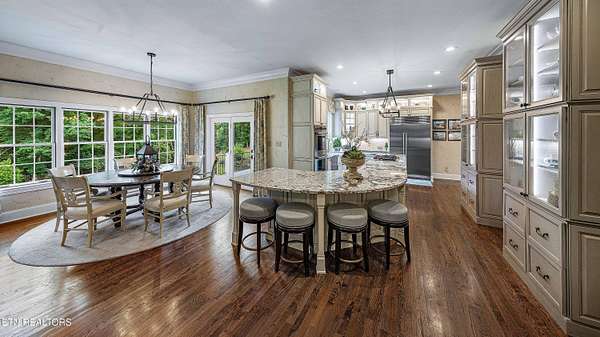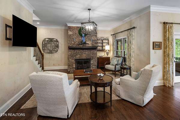 Outstanding traditional home on 1.78 acres offers a park like setting, massive circular drive and 4 car garage. All 3 levels are finished. 2-story living room, 4 fireplaces and outstanding primary suite with dual closets on main level. Screened porch overlooks private rear yard and huge patio below. Kitchen opens to keeping room and all very open. Upper level with 4 additional bedrooms and bonus room. LL completed by present owners adding 6th BR, rec room, kitchenette, massive storage & room for about anything you can imagine. Large patio off this level and very private rear yard. You will not be disappointed with this exceptional home and especially the beautiful setting. Impressive neighborhood all with oversize lots and walking areas.