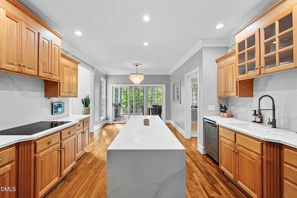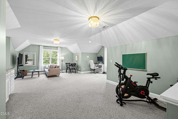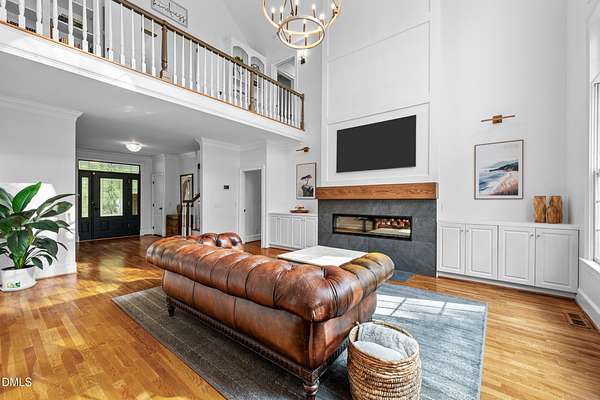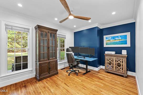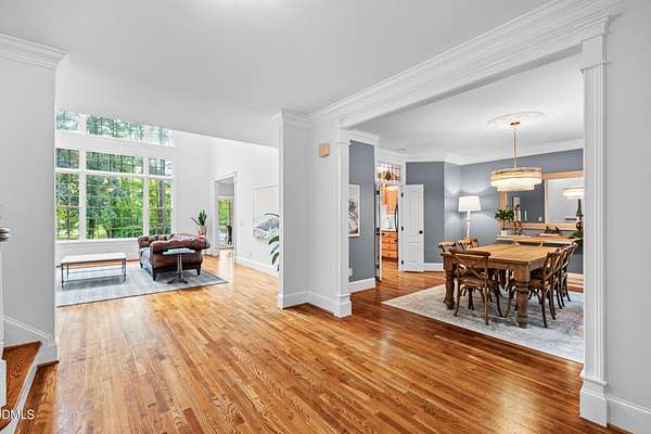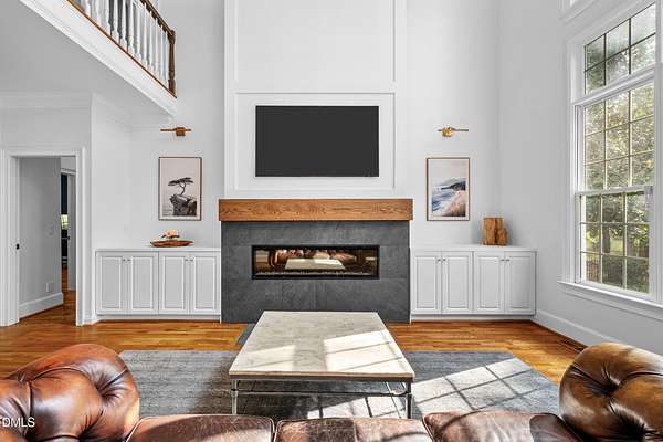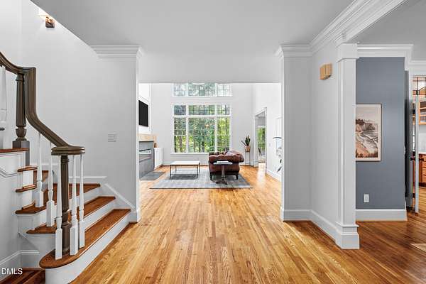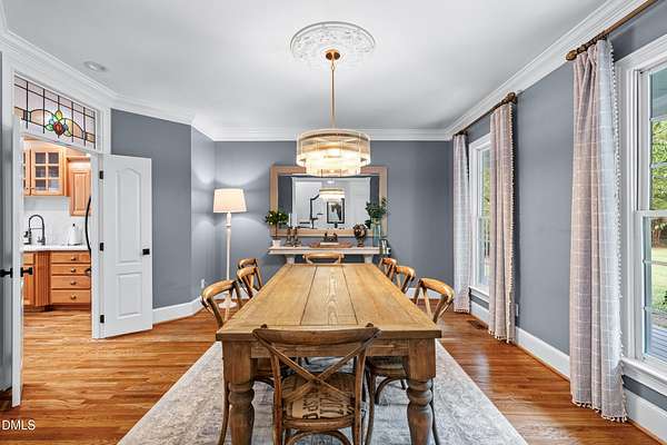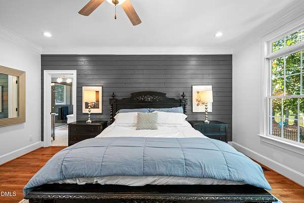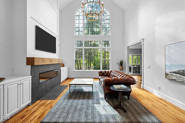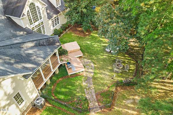 Exclusive Wake Forest Lakefront Estate Discover refined lakefront living with this private 4.35-acre retreat in Wake Forest, offering 4,614 sq. ft. of beautifully designed space, along with a 4 car garage! This is a four bedroom home that lives like a five bedroom home! Blending timeless craftsmanship with thoughtful updates, this custom-built estate delivers both luxury and peace of mind. Major upgrades include a new roof in 2018 and a tankless water heater 2024 ensuring modern comfort and long-term value. Crown molding, custom trim, and fresh paint throughout highlight the home's attention to detail. The heart of the home features an updated kitchen with quartz counters with waterfall island, quartz slab back splash, custom cabinetry, premium fixtures, and an effortless flow for entertaining. The hardwood floors continue to the first-floor primary suite is a true sanctuary, and a fully renovated spa-inspired bathroom with dual shower heads and even a cedar closet space! Adjoining the primary is an elegant private office. A formal dining completes this estate with enough seating for 8 guests comfortably. Soaring ceilings and walls of windows in the two-story great room flood the home with natural light and frame breathtaking views of the lake. Upstairs, 3 bedrooms, of which one has en suite bath, PLUS a spacious loft provide private havens for family or guests! A separate Bonus Wing with its own entry and staircase offers unmatched flexibility-ideal for multigenerational living, a guest retreat, or a home-based business. Here you will find another bedroom and loft area with a dinette kitchen!!! Outdoor living is elevated with a covered porch, hot tub, fire pit, and private dock, all set against the backdrop of serene lakefront scenery. The four-car garage includes one bay that is fully heated and cooled-perfect for a workshop, studio, or climate-sensitive storage. 12x18 shed on permanent foundation. All of this just minutes from Wake Forest's shopping, dining, and parks-an extraordinary estate where luxury and convenience meet.