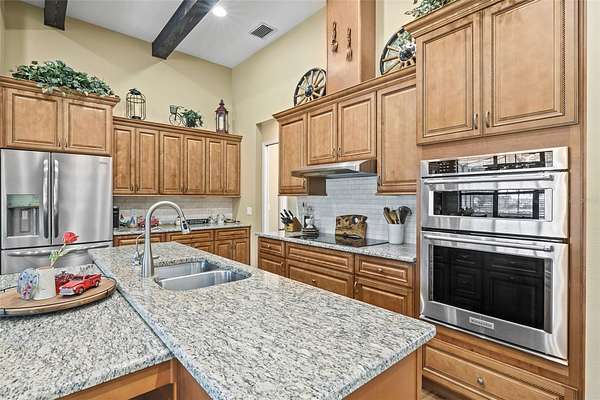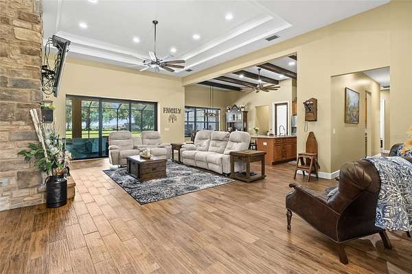 A Hidden Gem Between Lakeland & Tampa with a lot of space to garage 8 cars or use the additional 1500sf building for workshop, storage or more. Meticulously maintained custom home on *OVER TWO ACRES* surrounded by farmland. * NO HOA or CDD fees! * This property offers easy access to the city while providing the privacy and serenity of rural living on a dead-end street. The attached 3-car garage featuring 15' ceilings, a 220 outlet, a work nook with a utility sink, and expansive attic storage. *The detached 28'x50' garage has 18' ceilings, ROLL-UP DOORS and WALL-MOUNTED DOOR OPENERS, for smooth access for vehicles stacked on lifts. *Seller can remove lifts * to transform it into open space so you have a blank canvas to use how you need. Now about this custom home: This home has experienced *NO STORM DAMAGE* from previous storms. Has *WHOLE-HOUSE GENERATOR*, plus energy-efficient upgrades like a PROPANE TANK powering a TANKLESS WATER HEATER, FIREPLACE and LARGE OUTDOOR KITCHEN. Outdoor living is elevated with an *EXPANSIVE 52x19 SCREENED LANAI with PAVERS. ENERGY EFFICIENCY includes FOAM SPRAY INSULATION inside the block and ICYNENE INSULATION in the ceilings--BOTH main home and detached garage. These enhancements provide superior temperature control and lower energy costs. Now for in the inside details: Experience modern amenities with rustic charm. WOOD PLANK TILE flooring throughout the main living area, plush carpet in bedrooms. CUSTOM CABINETS with SOFT-CLOSE doors and drawers, GRANITE countertops. The WALK-IN PANTRY features a SENSOR LIGHT, ensuring convenience as you step in. Smooth cooktop with HOOD VENTED to OUTSIDE, built-in microwave and CONVECTION OVEN. *TALL 8' DOORS and high ceilings enhance the home's spacious feel, with tray ceiling designs and CEDAR-COVERED BEAMS in the kitchen. SEAMLESS BLUETOOH SPEAKERS are integrated into recessed lighting in both the main living area and lanai. The primary suite featuring French doors with BUILT-IN MINI BLIND in GLASS DOOR leading to the lanai. *DUAL WALK-IN CLOSETS and DUAL VANITIES. The spa-inspired WALK-THROUGH SHOWER with MULTIPLE SHOWER HEADS, while the BEAR-CLAW foot SOAKING TUB invites relaxation. Additional Storage & Outdoor Convenience Beyond the garages, the property includes a 12x24 shed with electric. A COVERED LEAN-TO provides the perfect spot to store kayaks, outdoor gear. Ample space on the property allows for RV parking and adding a pool. Too many details to list here, come see what makes this country haven so special.