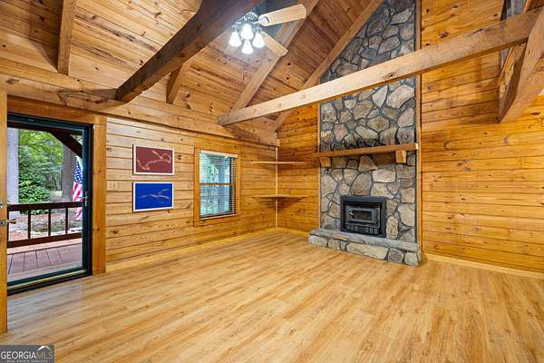 Private 10-acre retreat with a handcrafted log cabin, koi pond, and stream. Wide porch, stone fireplace, granite kitchen, plus main-level bed and laundry. Trails, wrap-around deck, and powered workshops make it ideal for horses, guest homes, or extra dwellings.