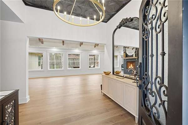 - Beamed Ceilings, Cathedral Ceiling(s), Double Vanity, Dry Bar, Entrance Foyer 2 Story, High Ceilings 9 ft Lower, Recessed Lighting, Vaulted Ceiling(s), Walk-In Closet(s)