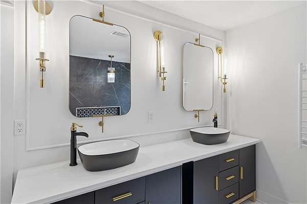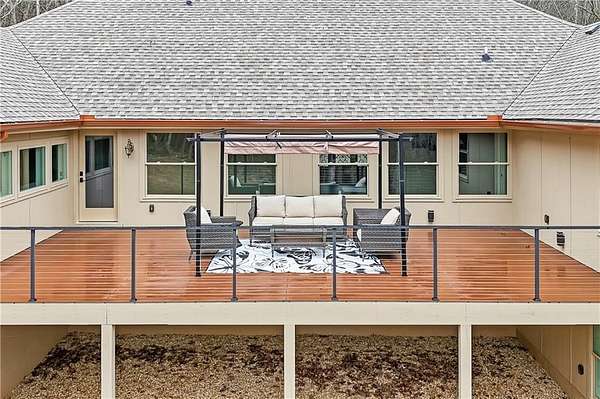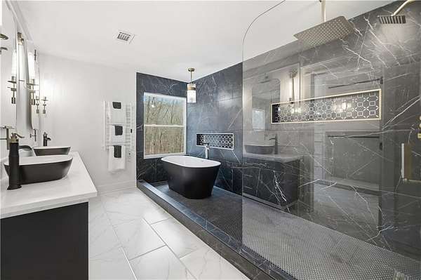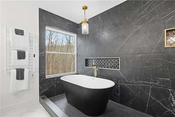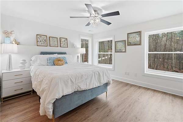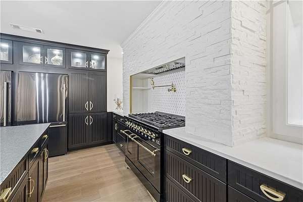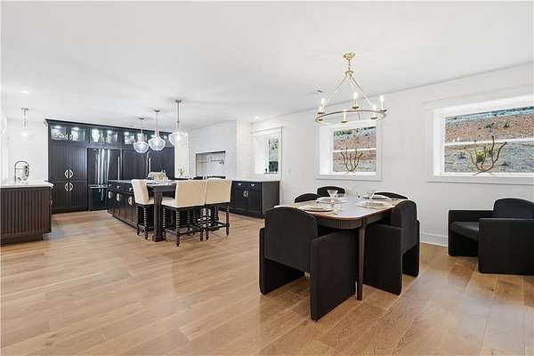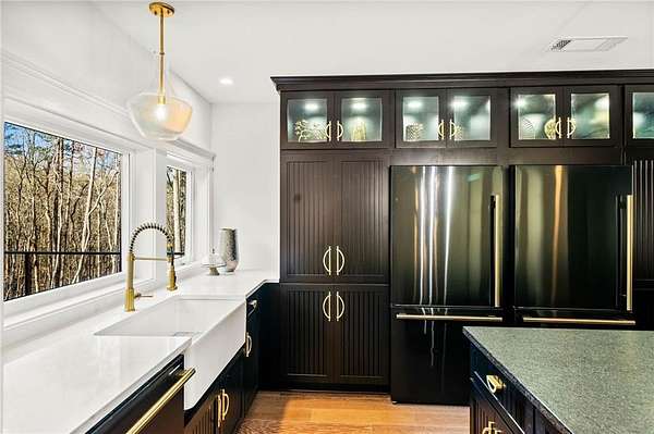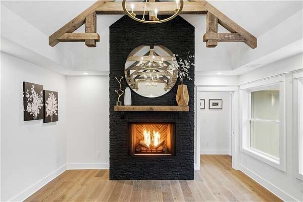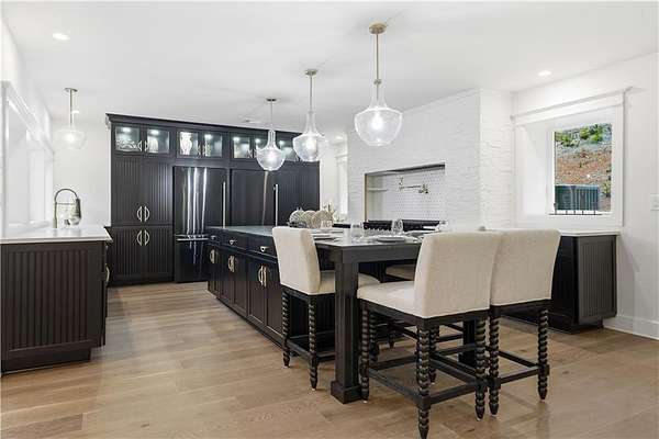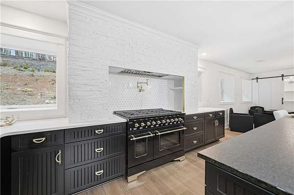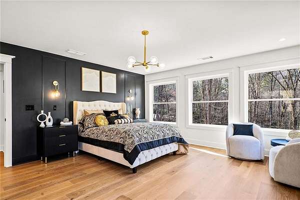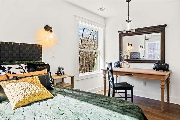 PRICED $400,000 BELOW APPRAISAL THIS MODERN EUROPEAN DESIGN MANOR HOME NESTLED ON a 9 + acre estate lot boasting 2 babbling brooks. This is the perfect combination of modern and elegance Simple and clean lines makes this brick and siding newly constructed home a sight to behold. As you step inside the beautiful wrought iron front door, you will experience the vaulted grand room with hand crafted wood beams, floor to ceiling modern stone gas log fireplace and oversized windows emitting calming natural light. Be the first to create meals in in this beautiful dream kitchen with dual refrigerators, 46" Hallman gas range, white quartz countertops and stunning 10' leathered granite island with seating. Adjacent to this is the dining area with a walk-in pantry hidden behind a sliding door. The primary ensuite follows with its tambour wall modern fireplace, views to the converging streams below, oversized shower and soaking tub combination, separate vanities and custom solid wood cabinetry in the walk-in closet. The secondary ensuite and third bedrooms are ample in size and located on this level as well as a laundry room with matching custom pantry cabinets. The terrace level boasts a full kitchen with quartz countertops, island with seating and an additional dining area. There is also a generous gathering area, a laundry room, oversized bathroom with shower and soaking tub, a primary bedroom with fireplace and walk in closet and another bedroom that has a very generous walk-in closet. In addition, the tiered theatre/media room with luxury leather ambient lighted theatre seats will offer hours of family fun. Behind a door off the sitting area, you will find the wine room with plenty of storage for wine and a waterfall countertop bar to enjoy those moments. Next to this is your workout/yoga retreat with walls of mirrors and a separate 4 walled concrete safe room. The garages offer 6 car spaces or 4 spaces plus an RV space for your Class A with 50/30 amps. Other noteworthy amenities are tankless water heater, separate HVAC systems for each level, engineered white oak wide plank hardwood flooring, Biltmore luxury vinyl wide plank flooring, tile and natural stone throughout, privacy due to the orientation of this 9+ acre estate lot, underground utilities, waterfalls/well defined hiking trails/bird sanctuary/strategically planned green space/7 separate nature park areas/low lot density and a pavilion for your private event all within this gated community, Uber Eats/Door Dash available, 7 miles to Piedmont Jasper hospital and trash pickup/mail delivery/package delivery to home available. Come home to peace and serenity and listen to the meandering streams and babbling brooks on your own property from your private deck while the deer drink from the stream. This home has been professionally styled and everything within conveys with the home with a few exceptions allowing you to immediately enjoy your new tranquil retreat. One year warranty added at closing for buyer!!!