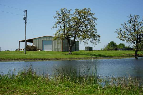 Feast your eyes on this 80-acre Tranquil Acres Cattle Ranch located on the west side of Lake West in Bryan County, OK offering great access, abundant water, rolling hill pasture and magnificent views. Record high cattle prices stoked with its ideal location, this productive cattle ranch carries 50 mama cows with improved pasture, sandy loam soil, cross-fencing, 6 ponds removing any worries of drought conditions to minimize annual profits. Scattered mature oak trees adorned throughout the property providing ample shade at the height of the summer months. General purpose barn 80 X 40 built in 2018, cattle chutes, utility equipment storage building 32 X 12 built in 1999 providing everything you need to work the cattle. The charming single-story traditional ranch brick home with 3 large bedrooms, 2-bathrooms was built in 1992 boasting 1745 square foot, 160 square foot porch, 32 X 20 carport with pipe fencing to appeal to the eyes. The open concept living space, with tile floors