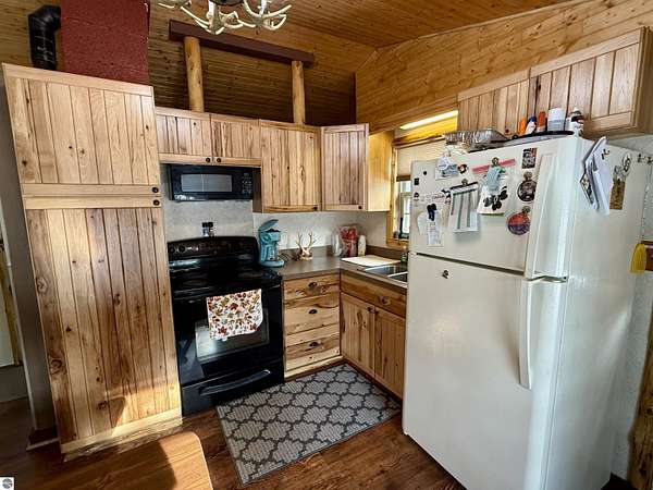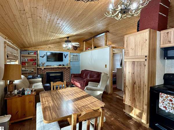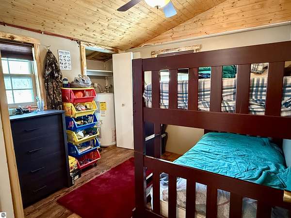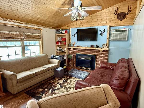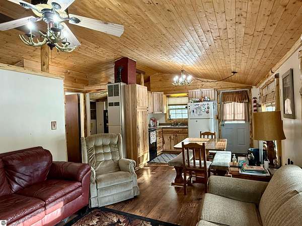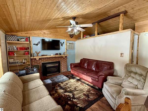 Est $663/moAdorable and full of rustic charm, this 2 bedroom, 1 bath cabin sits on a peaceful 1.5 acre setting and offers the perfect up-north escape. Vaulted knotty pine ceilings, real wood trim, and laminate flooring create a warm, welcoming atmosphere. The propane fireplace adds cozy ambiance, while a propane wall heater keeps the cabin comfortable year-round. Step outside to enjoy the deck--ideal for morning coffee or relaxing after a day outdoors. A handy storage shed provides extra space for gear and tools. Conveniently located near many inland lakes and state land, this cabin is a great spot to unwind, explore, and enjoy everything Northern Michigan has to offer.