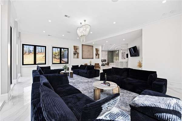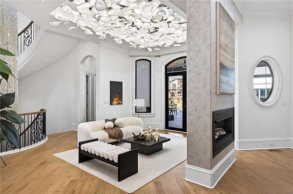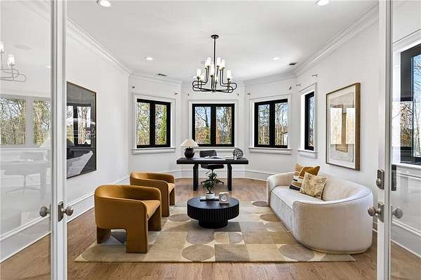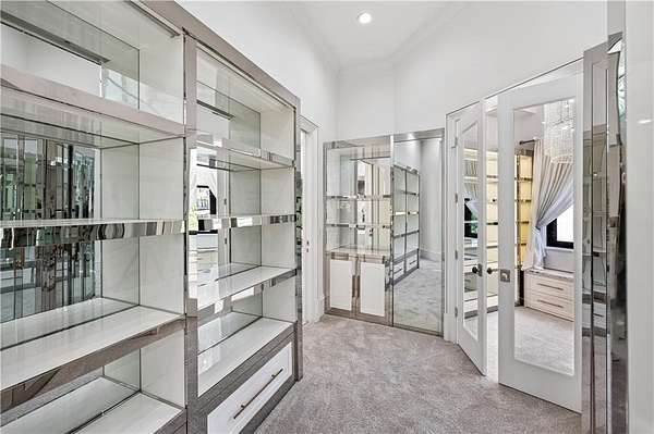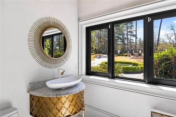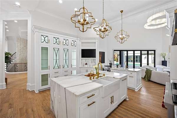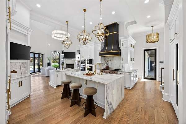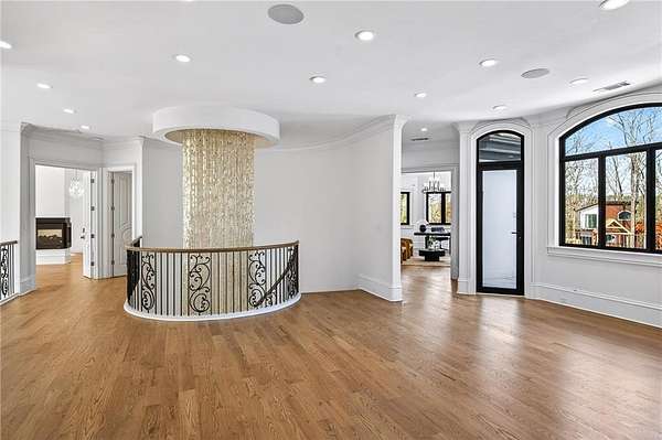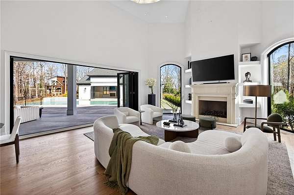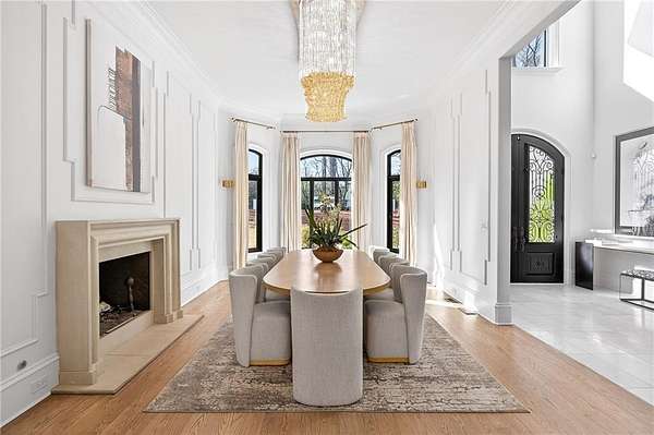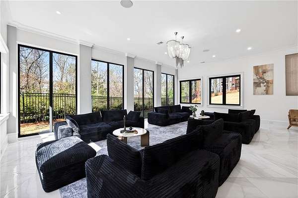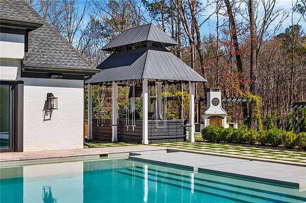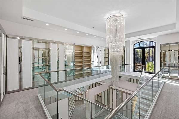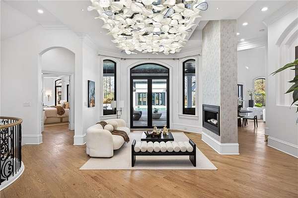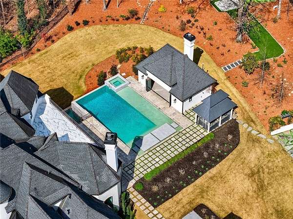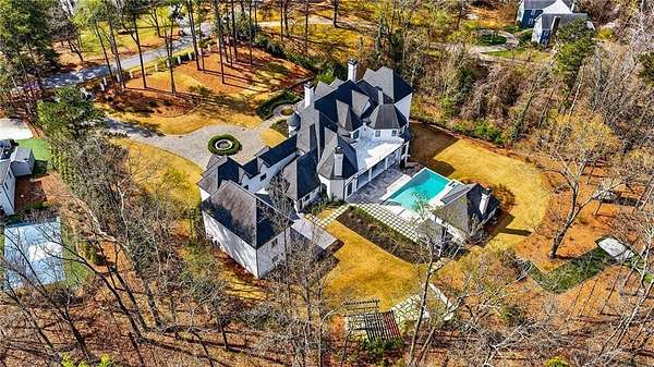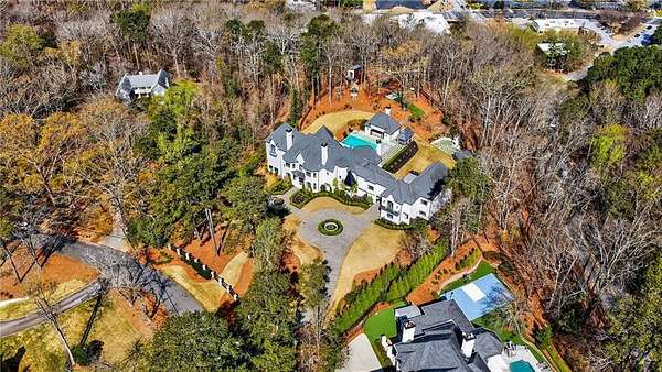 A commanding presence in the prestigious Riverview corridor, this gated 2-acre estate delivers a level of scale, amenity, and architectural drama rarely seen-encompassing over 16,000 square feet of meticulously designed living space, anchored by a resort-caliber pool, pool house, and an extraordinary suite of lifestyle-driven features. From the moment of arrival, the property establishes its stature. A long, private drive leads to a residence defined by proportion and presence, complemented by a six-car garage and a seamless integration of indoor and outdoor living environments. Inside, the home unfolds with intentional grandeur. A dramatic custom lighting installation cascades from the top floor through the terrace level-serving as both sculpture and focal point-while five fireplaces across the main level create warmth and architectural rhythm throughout the principal living spaces. The main level is designed for both elevated entertaining and effortless daily living, offering a multitude of formal and informal entertaining spaces. The primary suite-privately positioned on the main-is a retreat unto itself, complete with a fireside bedroom, a spa-inspired marble-clad bath with expansive vanity space, and a truly exceptional, two-story dressing room. This boutique-caliber closet is outfitted with custom mirrored wardrobes, ambient task lighting, and bespoke display installations designed to showcase even the most extensive handbag and shoe collections. At the heart of the home, the kitchen and two-story keeping room extend outward through accordion doors to a covered veranda overlooking the pool-blurring the boundary between interior and exterior and creating a natural setting for year-round entertaining. Upstairs, five ensuite bedrooms are thoughtfully arranged alongside a dedicated office, powder room, and morning bar. Among them, a true junior suite with fireplace and boutique-style closet, and an expansive in-law or au pair residence-complete with its own living room, kitchenette, bedroom, and bath-offer exceptional flexibility for multigenerational living. The terrace level is a destination in itself-curated for both entertainment and wellness. A custom wet bar with seating for twenty anchors the space, complemented by an oversized lounge wrapped in windows, a temperature-controlled wine cellar, a dedicated game room, and a private theater. A fully realized wellness wing includes a fitness studio, gym, sauna, and steam shower, while an additional guest suite and two powder rooms complete the level. Outdoors, the estate transforms into a private resort. The infinity-edge pool and spa are complemented by a fully equipped pool house with accordion doors, featuring a wet bar and dedicated full bath, an outdoor kitchen, fireside gathering spaces, and a remarkable custom-built treehouse-more aptly described as a storybook retreat. Perfectly positioned in Sandy Springs, the property offers immediate access to Truist Park, Buckhead, Atlanta's most sought-after public and private schools, and major thoroughfares-delivering both seclusion and connectivity. This is a residence defined by its scale, its amenities, and its ability to deliver an uncompromising lifestyle-an estate in the truest sense.
