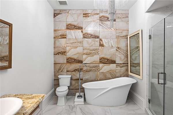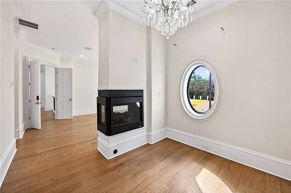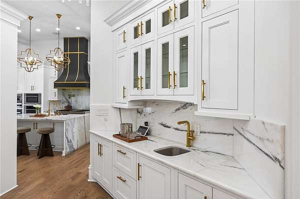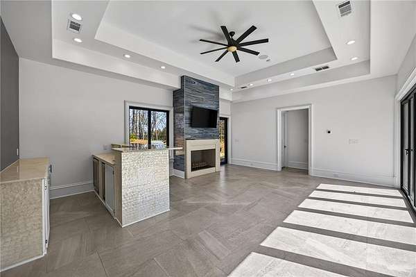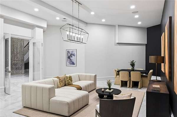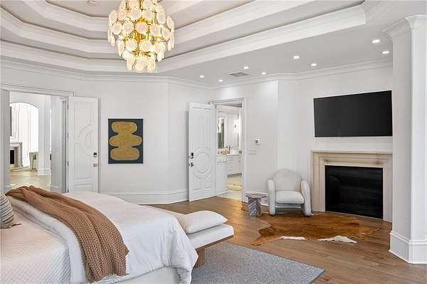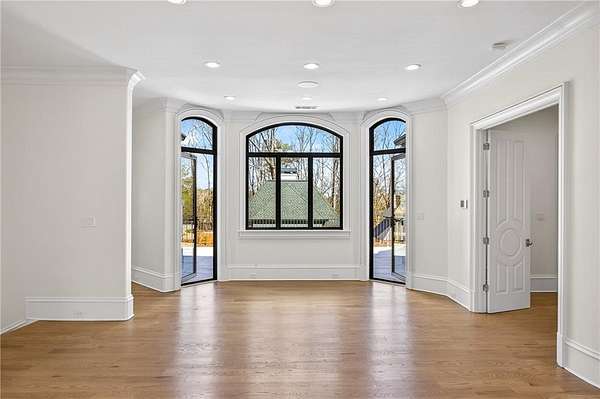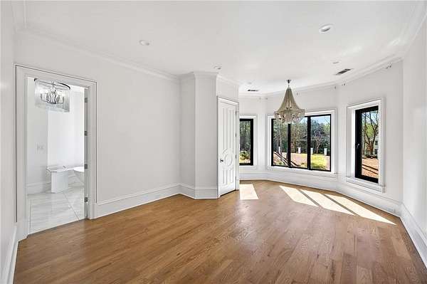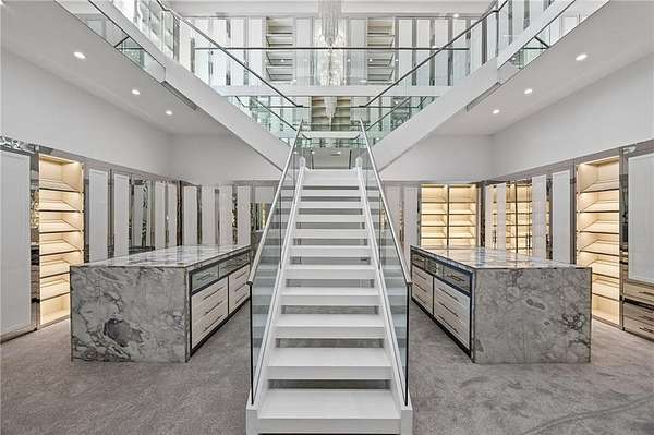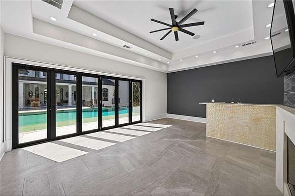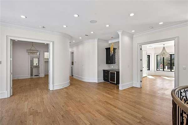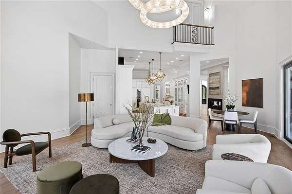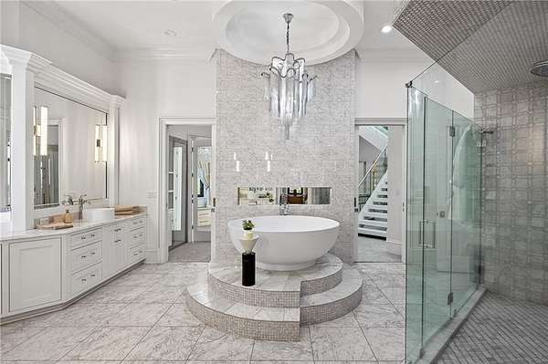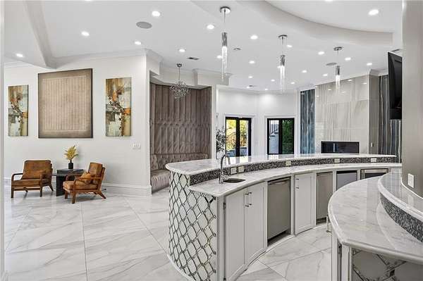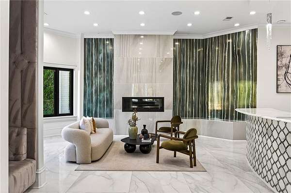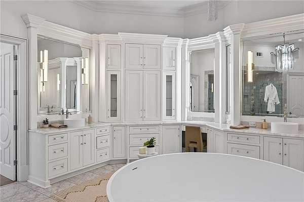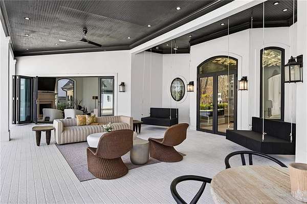 A commanding presence in the prestigious Riverview corridor, this gated 2-acre estate delivers a level of scale, amenity, and architectural drama rarely seen-encompassing over 16,000 square feet of meticulously designed living space, anchored by a resort-caliber pool, pool house, and an extraordinary suite of lifestyle-driven features. From the moment of arrival, the property establishes its stature. A long, private drive leads to a residence defined by proportion and presence, complemented by a six-car garage and a seamless integration of indoor and outdoor living environments. Inside, the home unfolds with intentional grandeur. A dramatic custom lighting installation cascades from the top floor through the terrace level-serving as both sculpture and focal point-while five fireplaces across the main level create warmth and architectural rhythm throughout the principal living spaces. The main level is designed for both elevated entertaining and effortless daily living, offering a multitude of formal and informal entertaining spaces. The primary suite-privately positioned on the main-is a retreat unto itself, complete with a fireside bedroom, a spa-inspired marble-clad bath with expansive vanity space, and a truly exceptional, two-story dressing room. This boutique-caliber closet is outfitted with custom mirrored wardrobes, ambient task lighting, and bespoke display installations designed to showcase even the most extensive handbag and shoe collections. At the heart of the home, the kitchen and two-story keeping room extend outward through accordion doors to a covered veranda overlooking the pool-blurring the boundary between interior and exterior and creating a natural setting for year-round entertaining. Upstairs, five ensuite bedrooms are thoughtfully arranged alongside a dedicated office, powder room, and morning bar. Among them, a true junior suite with fireplace and boutique-style closet, and an expansive in-law or au pair residence-complete with its own living room, kitchenette, bedroom, and bath-offer exceptional flexibility for multigenerational living. The terrace level is a destination in itself-curated for both entertainment and wellness. A custom wet bar with seating for twenty anchors the space, complemented by an oversized lounge wrapped in windows, a temperature-controlled wine cellar, a dedicated game room, and a private theater. A fully realized wellness wing includes a fitness studio, gym, sauna, and steam shower, while an additional guest suite and two powder rooms complete the level. Outdoors, the estate transforms into a private resort. The infinity-edge pool and spa are complemented by a fully equipped pool house with accordion doors, featuring a wet bar and dedicated full bath, an outdoor kitchen, fireside gathering spaces, and a remarkable custom-built treehouse-more aptly described as a storybook retreat. Perfectly positioned in Sandy Springs, the property offers immediate access to Truist Park, Buckhead, Atlanta's most sought-after public and private schools, and major thoroughfares-delivering both seclusion and connectivity. This is a residence defined by its scale, its amenities, and its ability to deliver an uncompromising lifestyle-an estate in the truest sense.