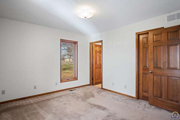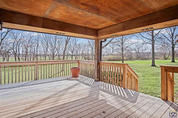 Welcome to this stunning Ranch style home in Washburn Rural with three-bedroom, two-and-a-half-bathroom home offering nearly 2,000 square feet of thoughtfully designed living space on 5.5 acres. Soaring vaulted ceilings and elongated windows flood the interior with an abundance of natural light, creating an atmosphere that feels both grand and inviting. The gorgeous kitchen showcases beautiful cabinetry and updated appliances, while generously sized bedrooms provide comfortable retreats for the entire family. A convenient half bath adjoins a spacious laundry area, adding everyday functionality. Step outside to discover a brand-new deck spanning the entire rear of the home, overlooking a picturesque creek, mature trees, and gracefully landscaped grounds. The property includes both a large two-car attached garage and a detached garage equipped with climate control, concrete flooring, and water access. The full walkout basement awaits your personal vision, offering tremendous potential to create your dream space. Schedule your private showing today before this exceptional property finds its new owner.