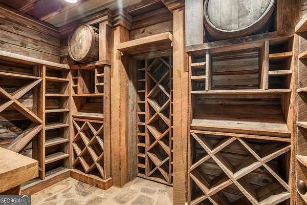 - Beamed Ceilings, Bookcases, Central Vacuum, Double Vanity, Master On Main Level, Rear Stairs, Tray Ceiling(s), Vaulted Ceiling(s), Walk-In Closet(s), Wet Bar, Wine Cellar