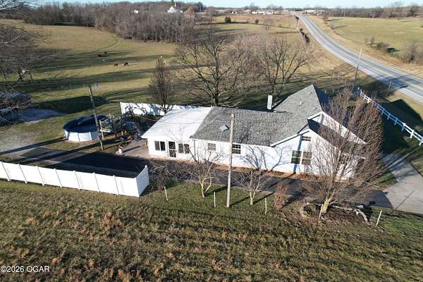 Maximize the Potential with this immaculate high visibility farm just outside the Monett city limits! This mostly open level and gently rolling 29 acres provides a beautiful & serene view from the back patio complete with an above ground pool. The re-modeled farmhouse features 3 BR's, 1 BA, extra room for a den/office, spacious laundry room, & a large sunroom for entertaining. 2-car de-tached garage, RV storage building, New shop in 2025 w/lean-to & covered area for equipment plus a dog kennel area. New well pump and pressure tank in 2021. New roof in 2019. New guttering in 2024. Tidy basement/cellar included for storm shelter. Acreage suitable for pasture, hay production, possible crops or commercial investment. 2 ponds (1 wet weather). Deer sightings for the avid hunter. City water hook-up available.