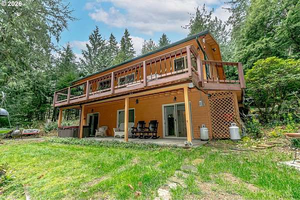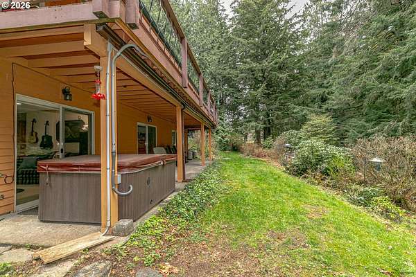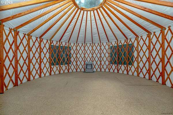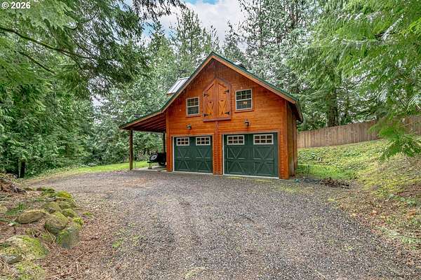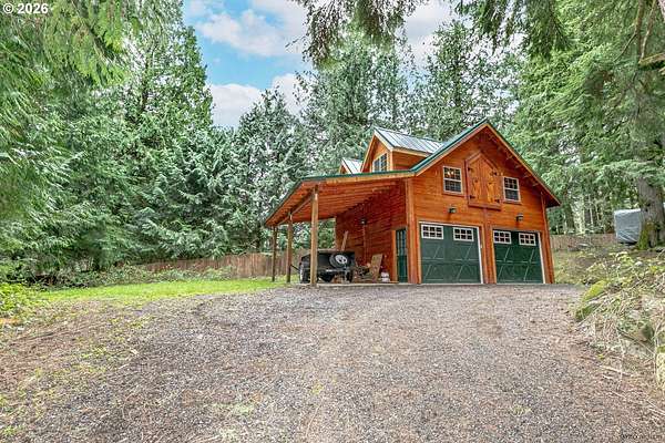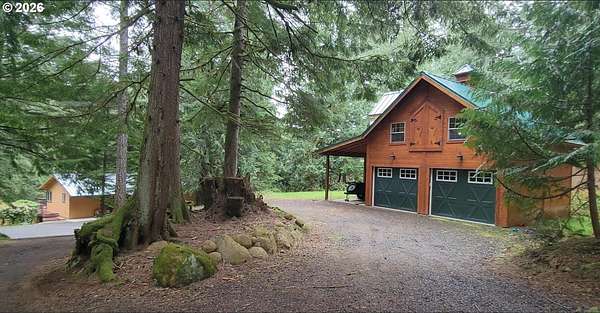 Well-maintained property featuring a newly built 24x24 shop with 24x12 lean-to, concrete floor, power, and an upstairs game room with wood-lined ceiling and walls. Water source is located just outside the shop, making future connection convenient. Two detached garages with space for up to four vehicles, ideal for storage, hobbies, or workshop use along with RV parking. Private well with large, insulated well house offering ample storage, newer metal roof, and backup 500-gallon water storage tank. Property includes beautiful old-growth timber, creating a peaceful, natural setting. Enjoy outdoor living with a Trex deck, hot tub, fire pit, and private yurt ideal for recreation or camping. Home updates include electric hot water tank (1 month old) and gutters (approx. 3 years old). Sub-Zero refrigerator is also approximately 3 years old. All appliances on both levels to remain, including washer and dryer. Upstairs bathroom features heated tile floors. Downstairs kitchenette offers added flexibility. Additional inclusions: dual propane generator, electric riding lawn mower, window AC unit, and propane bottles for generator. DO NOT DRIVE DOWN DRIVEWAY. SHOWN BY APPOINTMENT ONLY.