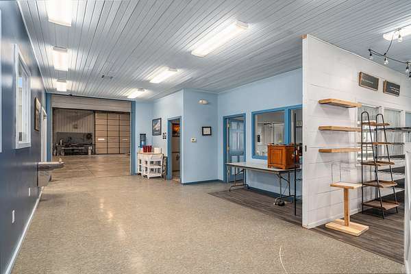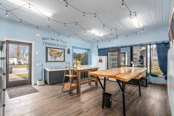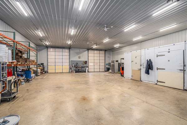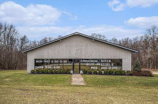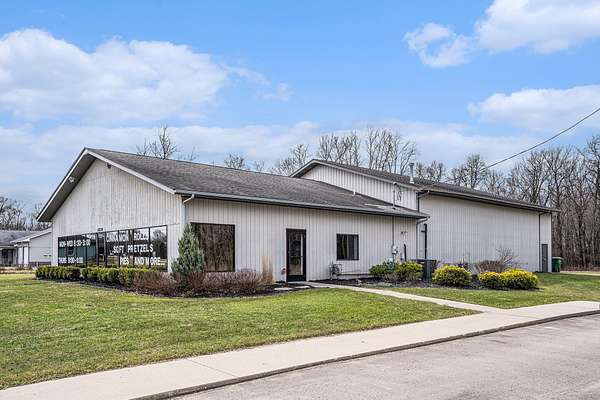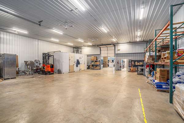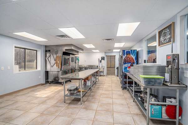 Terrific business location right on US-131 with high visibility, traffic count of approximately 20,000 per day and availability for great signage. Property has 7+ acres in total, room to grow and ability for a high volume of parking. Back of building has 16ft overhead doors and a 12 ft overhead separating front ''office'' area from storage/work area. Work area currently houses an on-demand hot water heater, gas area shop heater and large walk-in coolers all in steel lined insulated interior. ''Office'' area has been used as a sales area for baking business and leads to kitchen that was designed in 2009. Kitchen currently has class 1 vent hood with recycling unit, power supply is 200A with 3 phase converter for equipment on site. Well taken care of building with great potential!