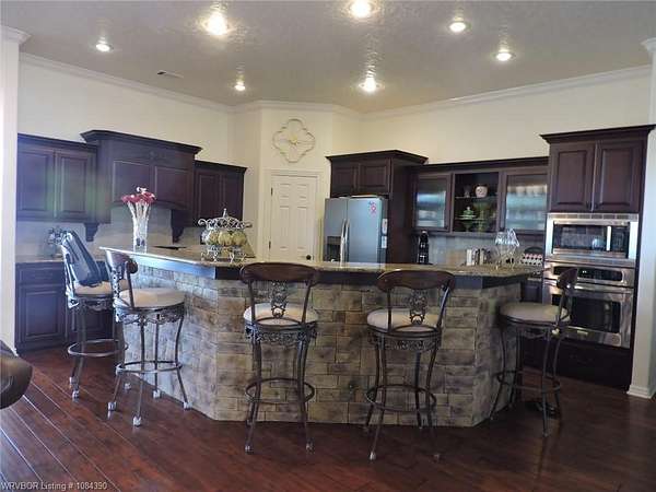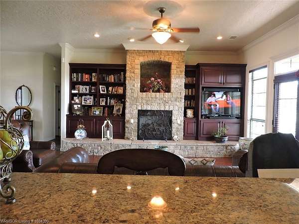 Incredible custom built home crafted with quality throughout. One level except for game room above garage. Tremendous estate nestled on 3 acres close to town. Large 30 x 30 detached shop with 2 garage doors in front and a third door in the rear to drive thru. Beautiful cooks kitchen overlooking the den. Large breakfast bar. Extremely well cared for and maintained. Quality cabinetry and built-ins throughout the home. Stamped concrete floors in hallway and bedrooms engineered wood floor in living and dining. Impressive stack stone fireplace, roof new in 2017, new microwave, camera and security system, newer hvac units, new disposal, extremely energy efficient. Must see this home to fully appreciate.