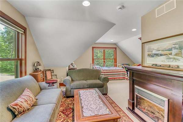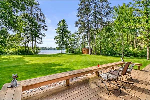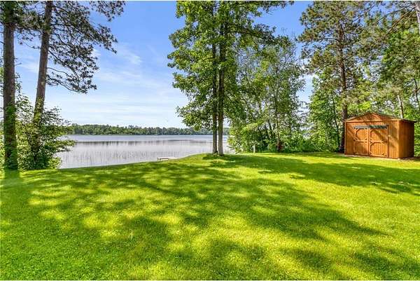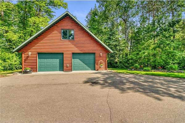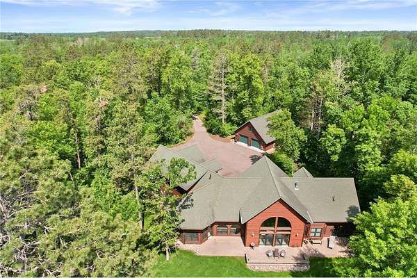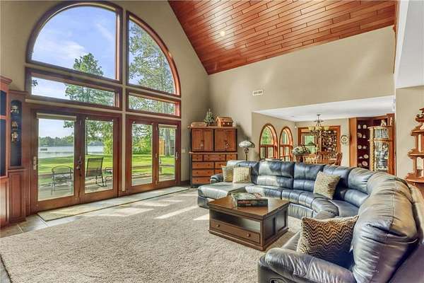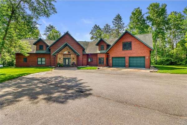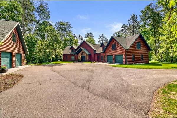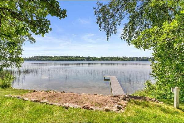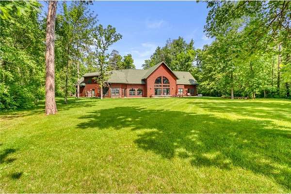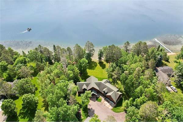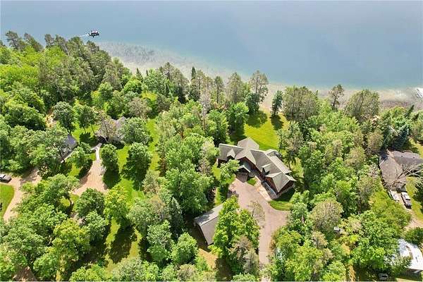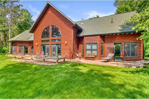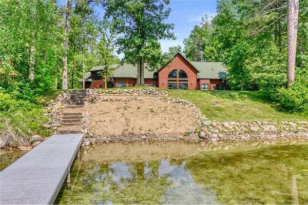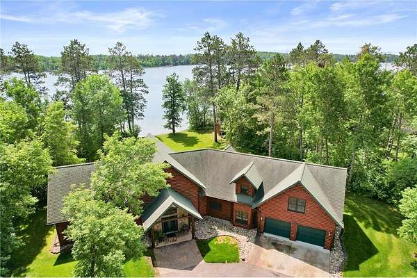 Boot Lake - This stunning 4-bedroom, 3-bath half-log sided home sits on 1.6 private acres with 162 feet of level, sandy shoreline on crystal-clear Boot Lake. Built in 2006, the home features cherry cabinetry and trim, a dramatic great room with a floor-to-ceiling stone, two-sided fireplace, and large windows that capture breathtaking sunrises. The spacious main-floor primary suite shares the two-sided fireplace and offers a large sitting area, walk-in closet, and a luxurious bathroom with a Jacuzzi tub. The octagon-shaped sunroom/library provides beautiful lake views and is filled with natural light--an ideal space to relax or read.