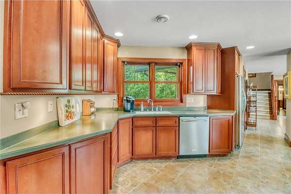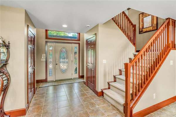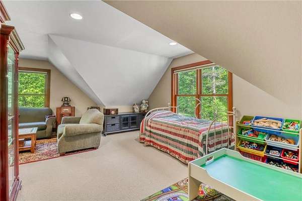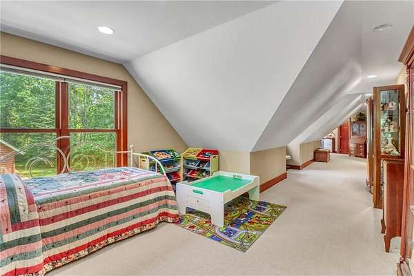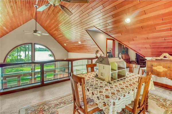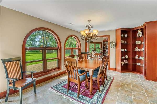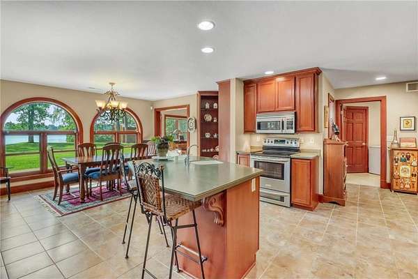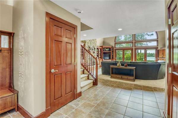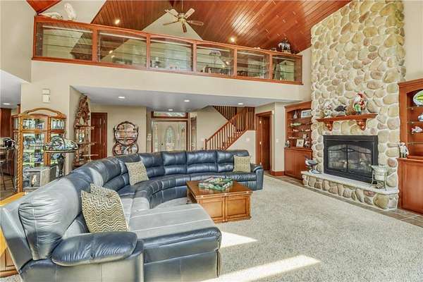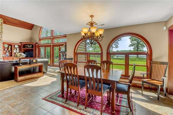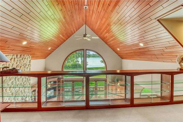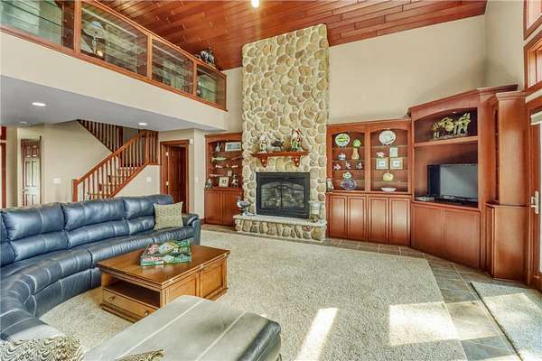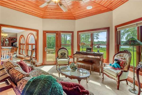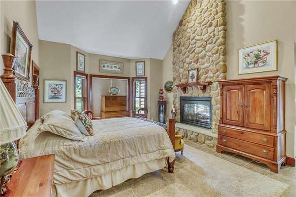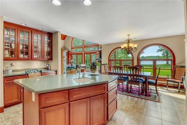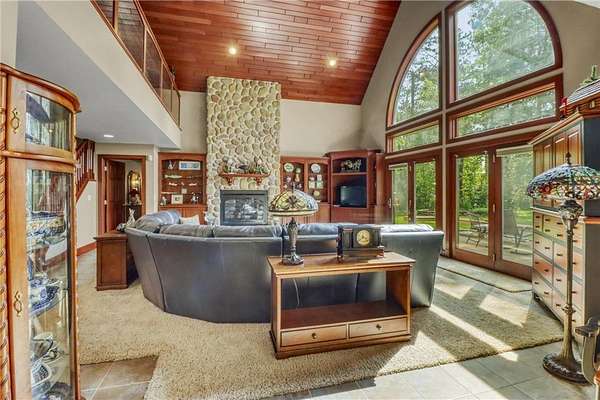 Boot Lake - This stunning 4-bedroom, 3-bath half-log sided home sits on 1.6 private acres with 162 feet of level, sandy shoreline on crystal-clear Boot Lake. Built in 2006, the home features cherry cabinetry and trim, a dramatic great room with a floor-to-ceiling stone, two-sided fireplace, and large windows that capture breathtaking sunrises. The spacious main-floor primary suite shares the two-sided fireplace and offers a large sitting area, walk-in closet, and a luxurious bathroom with a Jacuzzi tub. The octagon-shaped sunroom/library provides beautiful lake views and is filled with natural light--an ideal space to relax or read.