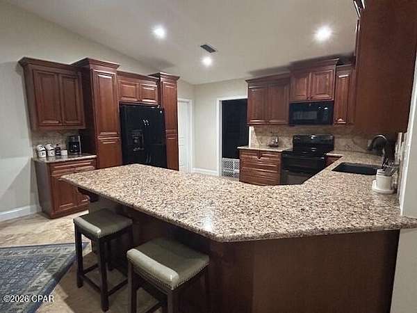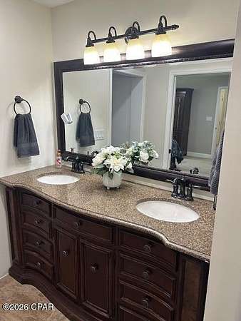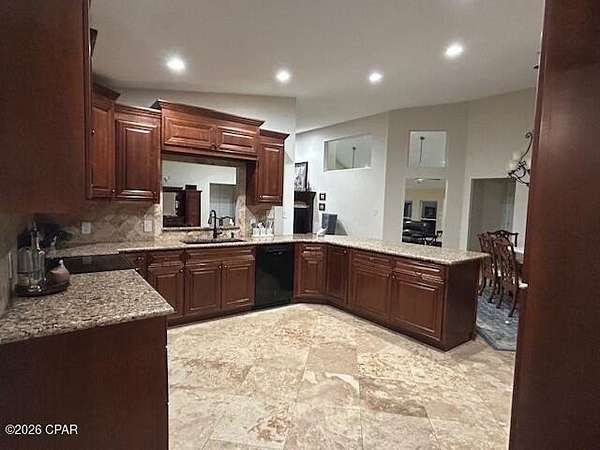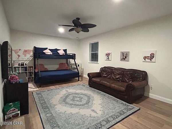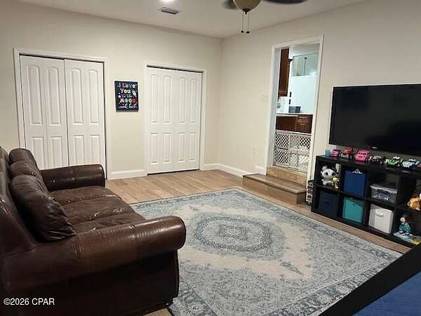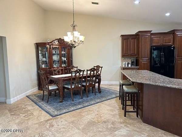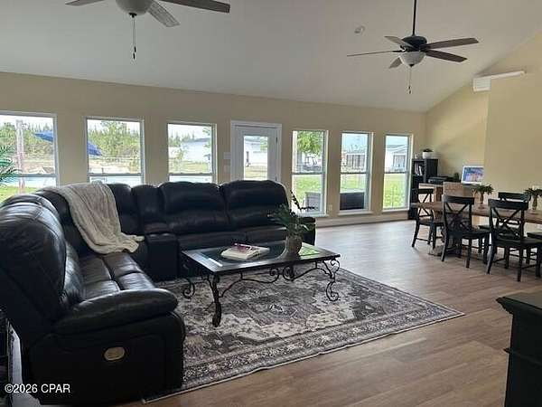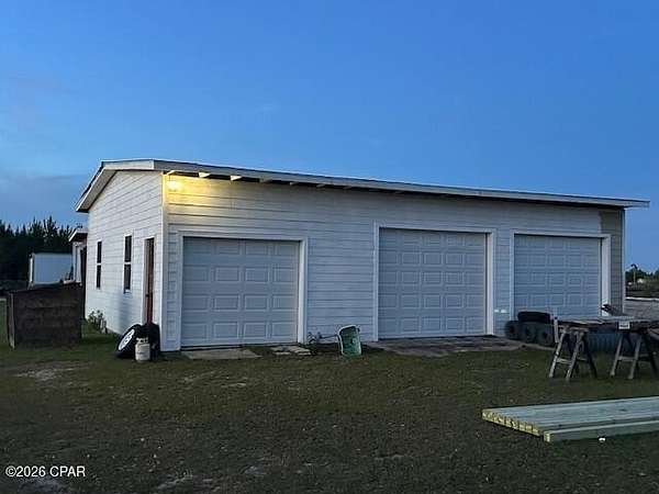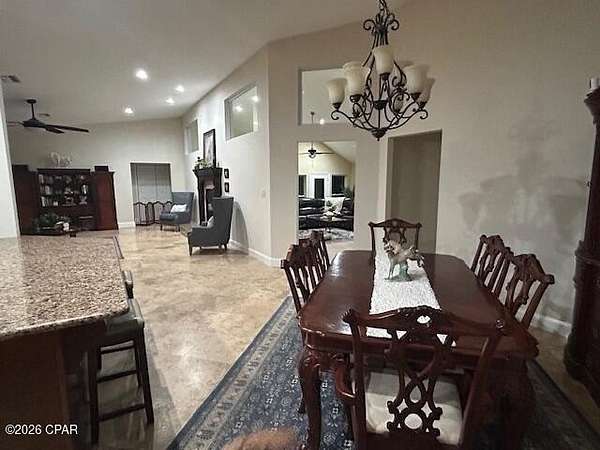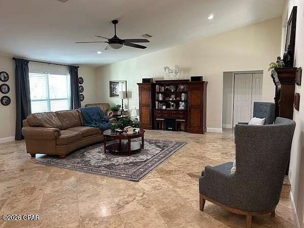 Fabulous home on 2.5 acres so close to town and only 30 minutes from Tyndall AFB and the Navy base, Publix and Starbucks are 2 miles away! When you walk into the very open floor plan you can see the spacious living room with a large wood burning fireplace. Travertine tile throughout the living , dinning, kitchen, and laundry room. Home has huge open spaces and vaulted ceilings. Favorite room in the whole house is the family room, 650 sqft with 22 ft vaulted ceilings, multiple large windows let so much light in. Perfect for entertaining! Separate bedroom spaces, a large bedroom off kitchen, two more large bedrooms on the other side of home, master bedroom is off the dining room. Master bedroom has a great closet and wonderful jetted corner tub with awesome walk in shower. Tons of storage spaces, home has spray foam insulation thoughout. Can we say tons of garage space? 3 car garage attached to home, a 1200 sqft detached garage that would make a cute mother in-law or rental home, with finish out, and a 2100 sqft detached garage! Huge, 44x22 inground pool for the kiddos! Pond with Bass, Bluegill, and one rescued turtle. This home has NO HOA so you can pretty much do what you want, also zoned R2 so you can have another residence on the property. Bougie chicken coup, for all your fancy egg layers. Would be great for business owner with lots of equipment or someone with tons of toys! RV power pole, and shallow well with hand pump! This home truly has it all!
