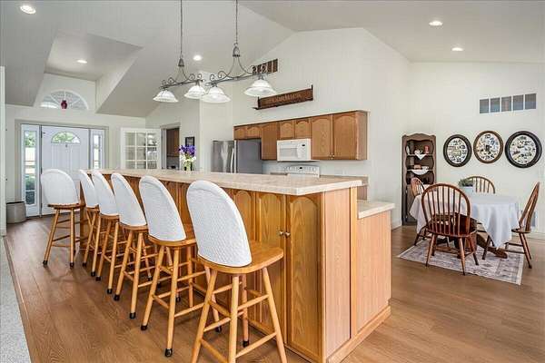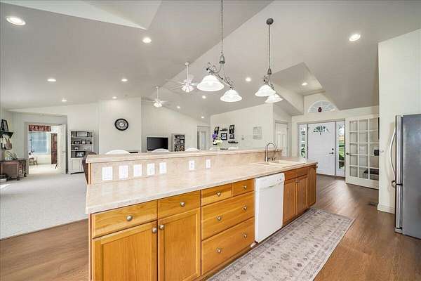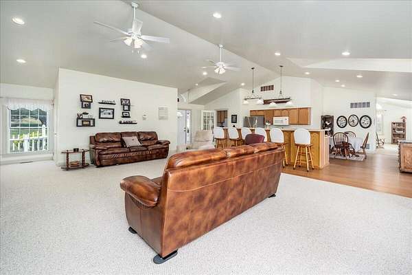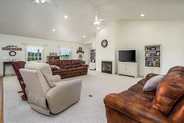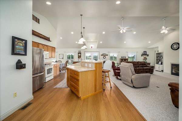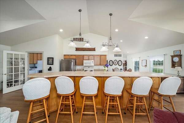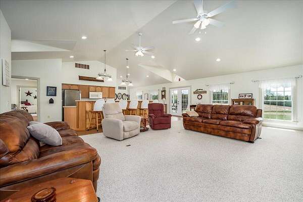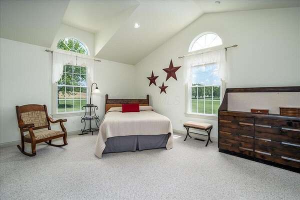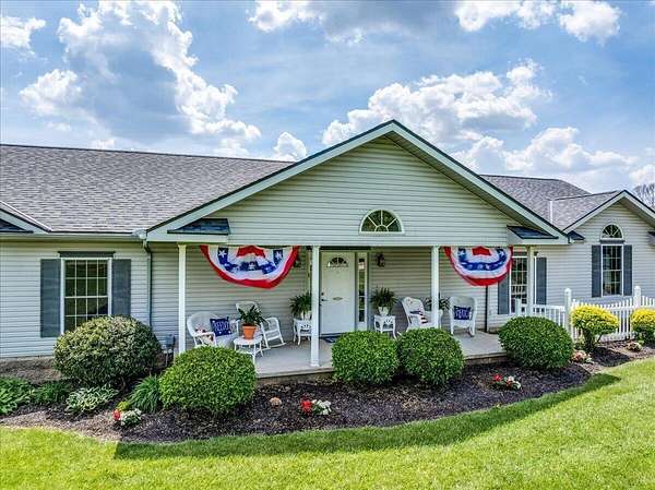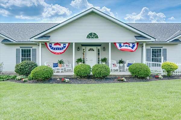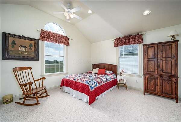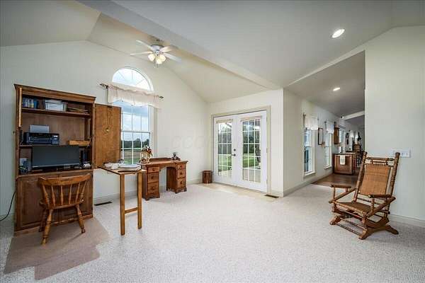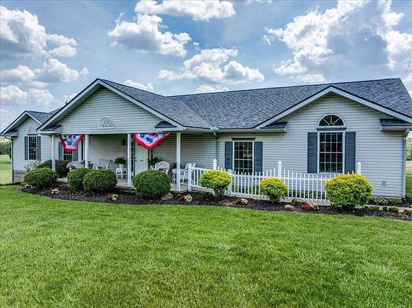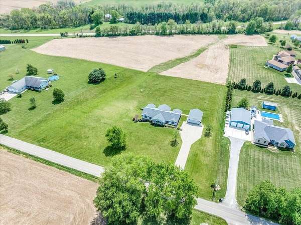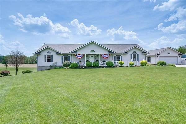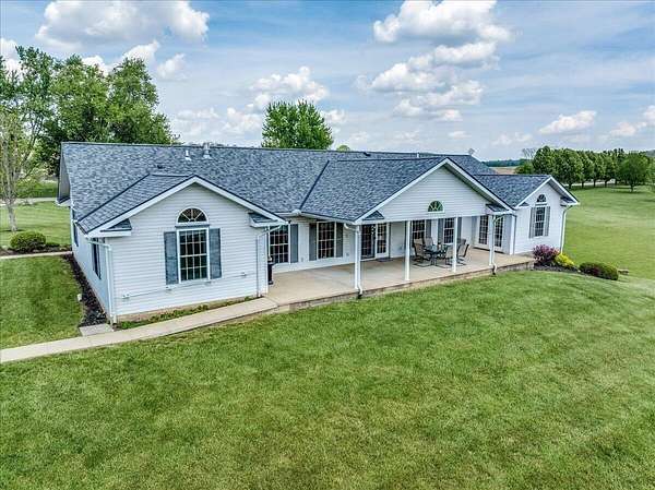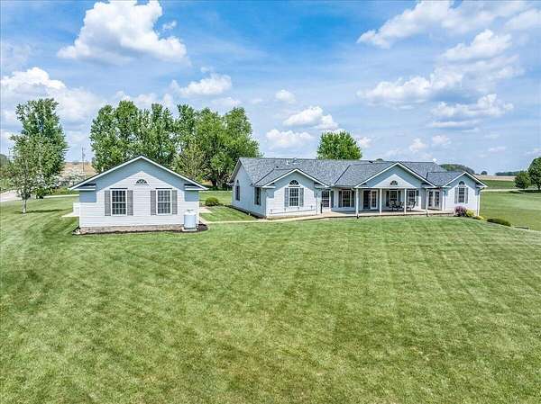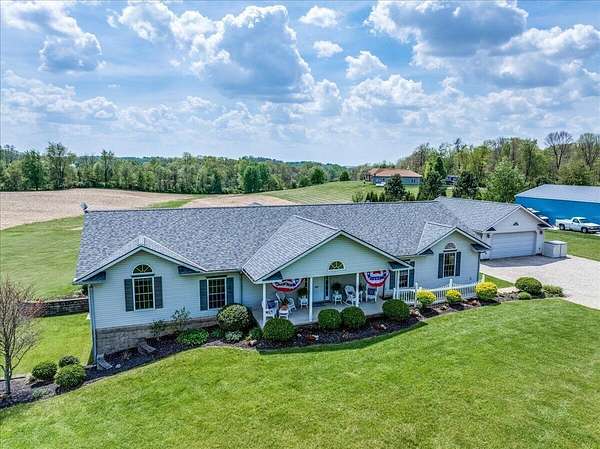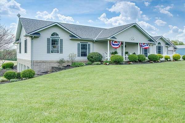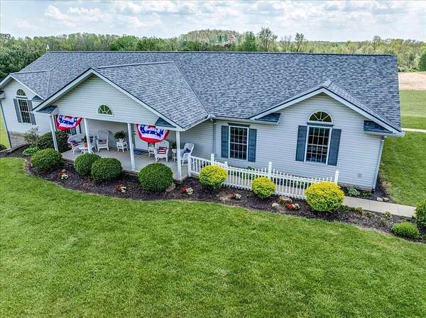 Set on 6.81 acres with a perfect blend of open lawn and productive farmland, this well-maintained property offers space, comfort, and thoughtful design throughout. With convenient access to SR 22 and SR 33, you can enjoy peaceful country living without sacrificing accessibility. Inside, you'll find 2,688 sq. ft. of living space designed with both functionality and ease in mind. The barrier-free layout includes features like low-threshold showers and easy-to-use lever handles, creating a home that's comfortable for all stages of life. The flexible floor plan offers 3 bedrooms plus a study that can easily serve as a 4th bedroom, along with 3 full baths (two barrier-free) and a half bath. Two bedrooms feature Jack & Jill sinks, and every room is equipped with ceiling fans for added comfort. The kitchen is equipped with reverse osmosis filtered water, and the home is filled with natural light from 14 windows, including 5 half-rounds that add character and charm. A cozy fireplace and jacuzzi tub provide perfect spots to relax, while geothermal heating and easy-to-clean metal ductwork add efficiency and peace of mind. Step outside to enjoy the covered front and back porches, ideal for taking in the scenic surroundings. The home has been meticulously cared for, with recent updates including new filters, freshly cleaned carpets, updated smoke detector batteries, and a serviced septic system. The full 2,688 sq. ft. walk-out basement is a blank canvas, already featuring a full bath, kitchenette plumbing, 9-foot ceilings, and natural light--ready to be finished to suit your needs. A heated 24'x32' garage with a bathroom and finished interior adds even more versatility, while the property also offers space and utilities in place for a future pole barn. This is a move-in ready home where pride of ownership is evident at every turn. NO SUNDAY SHOWINGS!