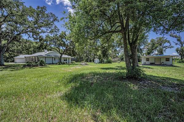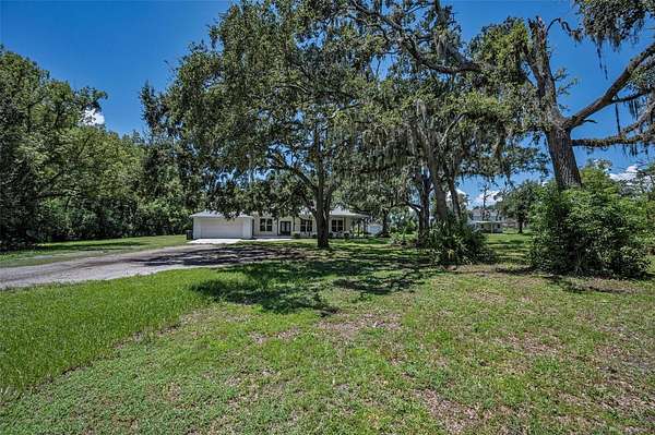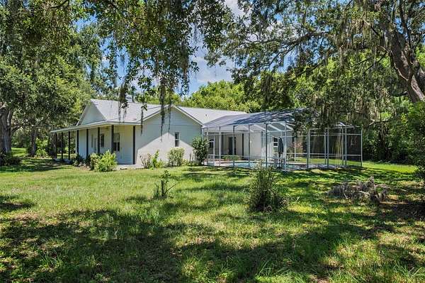 This lovely 3 Bed, 3 Bath home has the quintessential feel of "Old Florida" living. As you enter on to the 5+ acre property, the scenic driving path leads you back to a classic style ranch-house...that appears to be straight out of a movie set. From the expansive wrap-around porch to the sprawling greenery which surrounds the home...the overwhelming sense of beauty, peace, and serenity is undeniable. The interior split-bedroom layout transitions smoothly from the oversized kitchen, dining room, and spacious family room (which boasts a wood-burning fire place). This home is ideal for a growing family, and/or multi-generational living. The 3rd bedroom is set up as an "In-Law Suite", with doors that can partition it off from the rest of the home. The 3rd bedroom features it's own sitting room, kitchenette, and full-sized bathroom. The home has numerous sliding glass doors and large windows that allow for an abundance of natural lighting throughout. The screen enclosed pool deck can be accessed from almost every room in the house...the main common area, the master bedroom, and the 3rd bedroom's "cabana" bathroom. The property is located only a few minutes away from I-4 & I-75, which makes getting to Buccaneer, Lightning, or Rays games a convenient commute. Even day-trips to Orlando's Disney World can be part of a regular routine. This home has far too many features & qualities to list...you really must see it for yourself!!