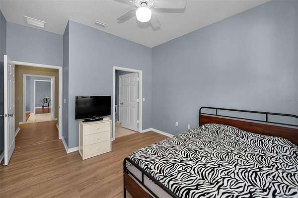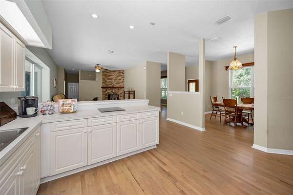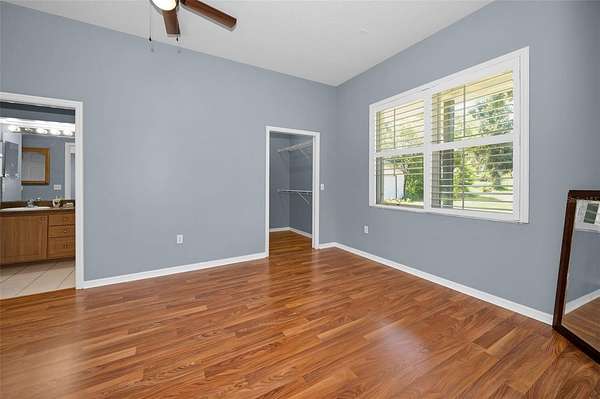 - Ceiling Fans(s), Eat-In Kitchen, High Ceilings, Kitchen/Family Room Combo, Open Floorplan, Primary Bedroom Main Floor, Split Bedroom, Thermostat, Walk-In Closet(s)