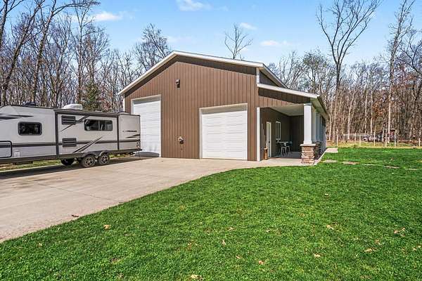 On Market date is 4/23/26. Exceptional custom estate set on 20 private acres bordering roughly 35,000 acres of the Allegan State Game Area. This property offers protected surroundings, rare privacy, and a setting that's difficult to replicate. The landscape is truly one of a kind, featuring mature trees, a mini orchard, abundant wildlife, and wide-open space to explore, unwind, or simply enjoy the peaceful environment. Perfectly situated on this oasis is an expertly crafted home including 3 bedrooms, 2.5 baths, and 2,622 square feet of thoughtfully designed living space, showcasing custom cabinetry and quality craftsmanship throughout. The primary suite offers a spa-style walk-in shower, while a URC Total Control system delivers whole-home audio and video, including a dedicated theater and sound extended to the barn. The home is also generator-ready for added peace of mind. Outbuildings and infrastructure further elevate the property, including a 36 x 48 foam-insulated pole barn with elevator and RV hookup, a 20 x 24 hobby barn ideal for storage or workspace, an irrigation system, hot and cold water in the garage, and a hot tub hookup. A rare opportunity to own significant acreage with direct access to protected land, all just minutes from Saugatuck, Douglas, and Holland--and close to Lake Michigan beaches, wineries, dining, and shopping--offering a unique blend of seclusion and convenience.
