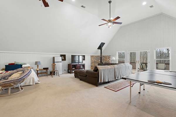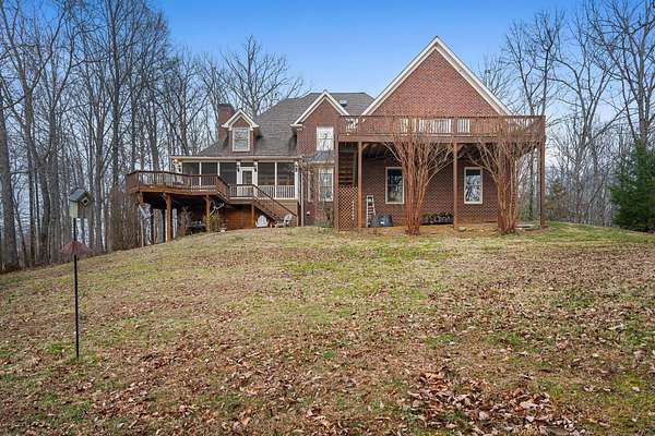 Outdoor living is exceptional: relax on the Fab Porch Company screened porch, gather on two expansive decks, or unwind on the patio while taking in sunset views and the peaceful Tennessee landscape. A sports court adds a rare recreational element, while practical upgrades include a 4-car garage, abundant storage, a propane generator, and a storm cellar.