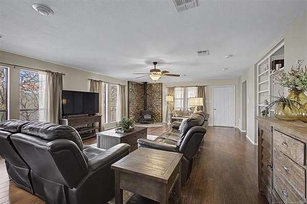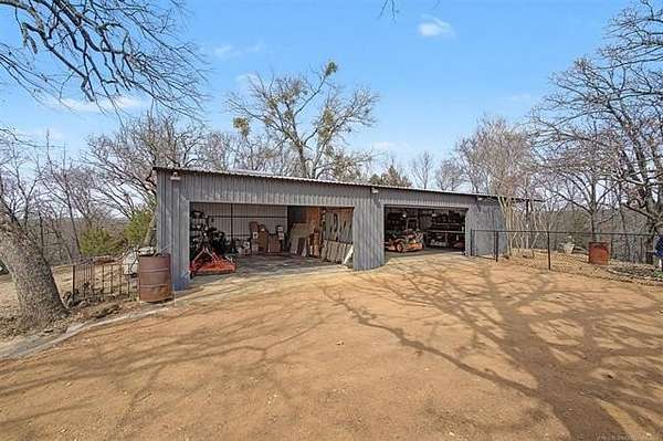 Lake Texoma Hideaway Retreat - 5 Acres of Peace & Privacy If you are looking for a place that is peaceful and quiet, this is it. Rare opportunity to own a beautifully maintained 3-bedroom, 2-bath home situated on 5 acres backing to Corps of Engineers land on two sides, offering exceptional privacy and protected surroundings. Mature trees and a private pond create a serene setting that truly feels like your own retreat. The property is well-equipped for both everyday living and lake life. A 4-car garage with insulated shop and attached patio area provides ample workspace and storage. In addition, there is a separate 2-car shop building with carport and attached pergola-ideal for entertaining, hobbies, or storing boats, SxS, and recreational equipment. Outdoor living is a highlight with multiple entertaining areas, outdoor TVs, and security cameras for added peace of mind. Enjoy relaxing mornings and quiet evenings on the covered back porch overlooking the pond and wooded acreage. Inside the home, you'll find two AC units, two septic systems, and two water heaters, offering efficiency and convenience. Located just minutes from Lake Texoma State Park, Catfish Bay Marina, West Bay Casino, and the upcoming Hard Rock development, this property offers the perfect balance of seclusion and accessibility. Whether you are seeking a full-time residence, weekend getaway, or private lake retreat, this property delivers space, functionality, and the peaceful setting you've been searching for.