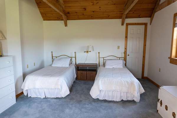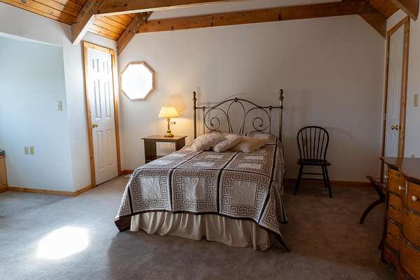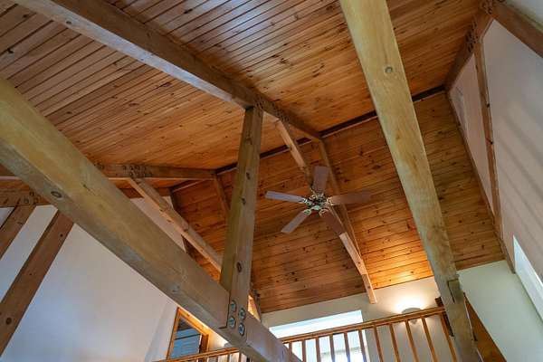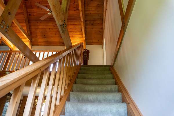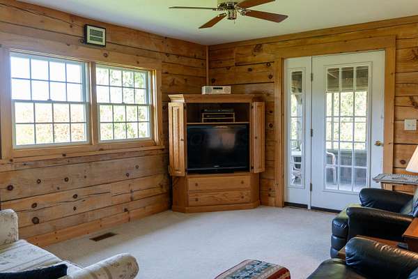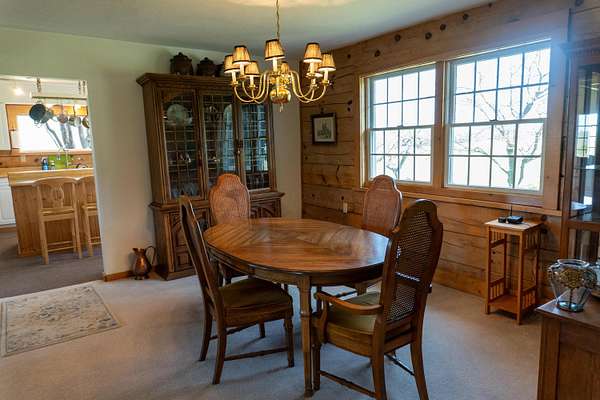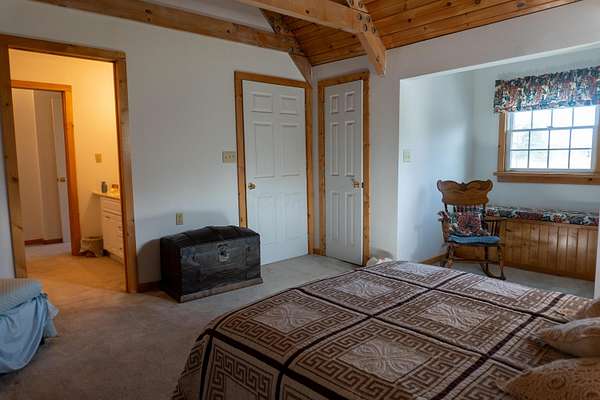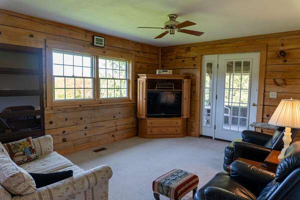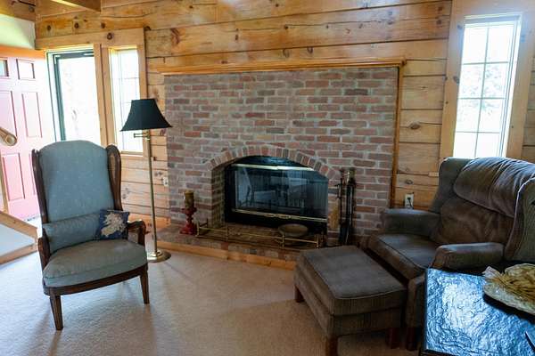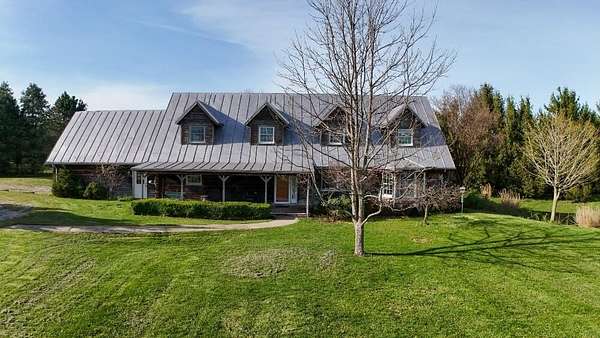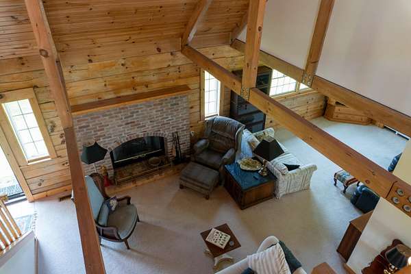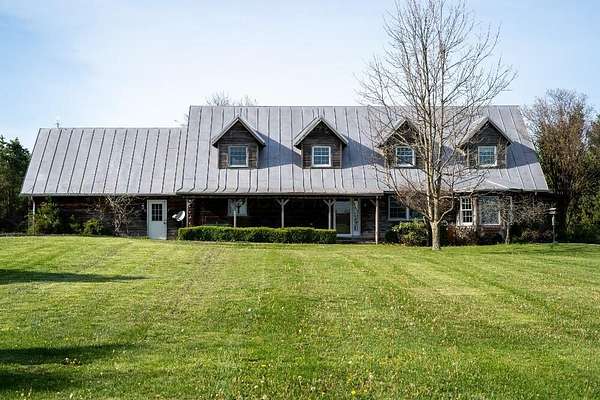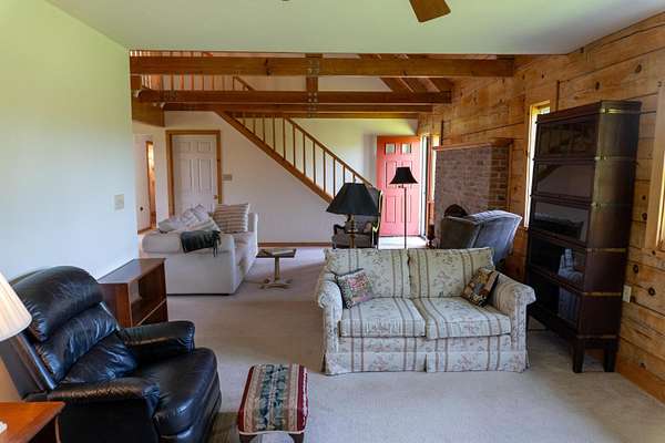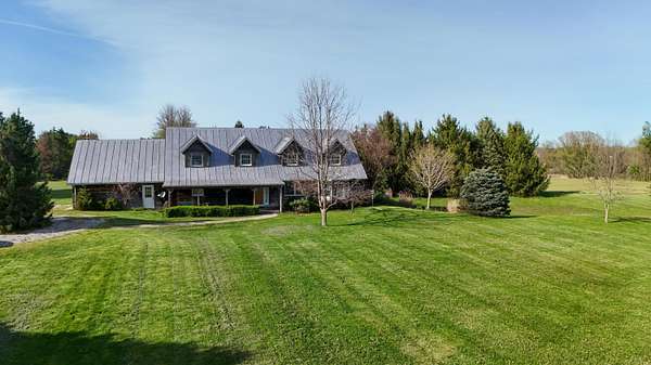 Beauty & Serenity Abound! This very secluded log home, situated on over 34 acres was previously a tree farm. Spacious primary suite on main floor. Open beam ceiling in living room and great room. Large country kitchen and formal dining room with views from every window. Upstairs, you'll find a loft that overlooks the main level with fireplace and 2 large additional bedrooms with window seats. The covered front porch says, ''Come and sit a while & relax!'' Just minutes to I-71 for an easy commute.