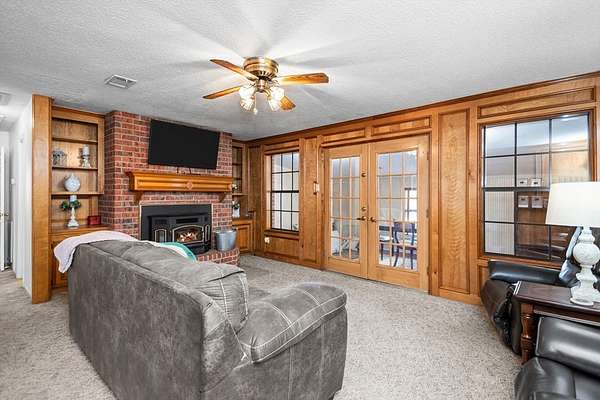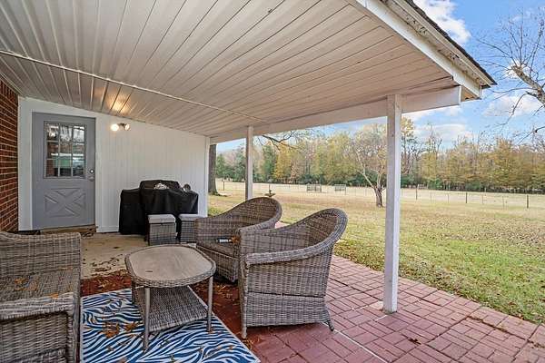 As you enter the circle drive, you will be impressed with the pretty setting this three bedroom, two bath brick home offers. The welcoming front porch leads you into a spacious living area that opens to the kitchen, perfect for entertaining. The living area features a wood pellet fireplace flanked with built-ins and French doors that lead into a bonus room, that could be used as a dining area, home office, or playroom. The island kitchen features great cabinet and counter space, double ovens, cooktop, and pantry. The primary bedroom has a private bath with his and her sinks and a shower/tub combo. Two guest bedrooms share a hall bath with a shower/tub combo. The laundry is located in the attached 2-car garage. Outdoors, you'll love the back patio to host family barbecues. This 6.1130-acre property is fenced and cross fenced for your livestock and 4H projects, has a storage barn, and a carport for utility vehicles. Call today for more details!
