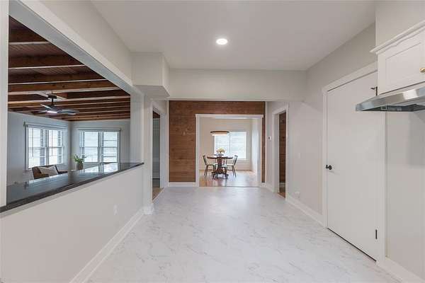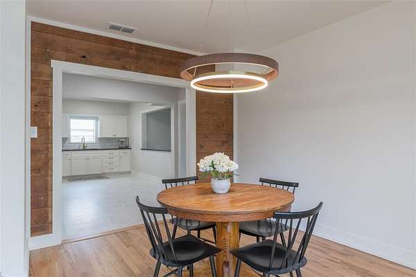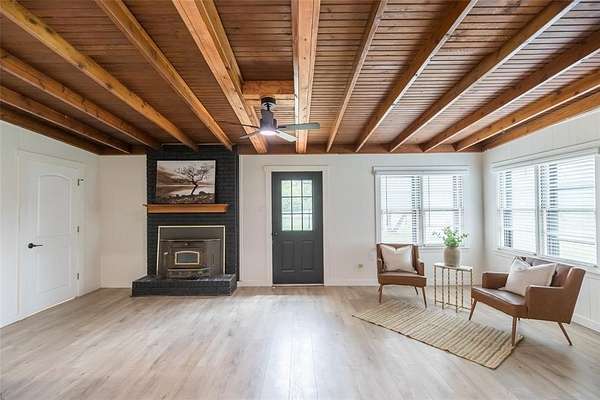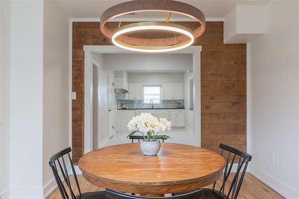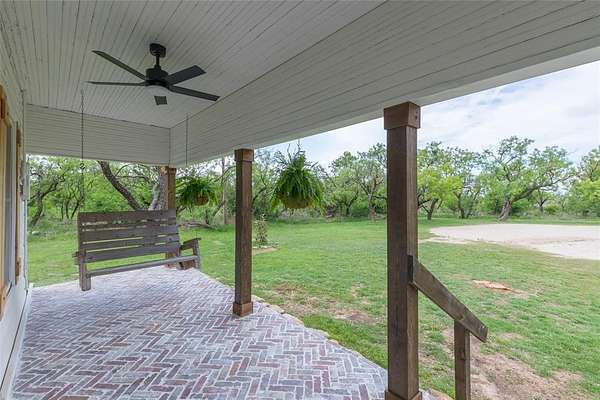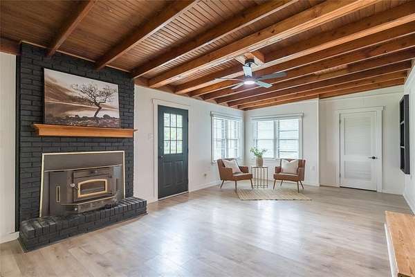 Owner agent. Modern charm meets country living on 3.8 acres. This fully renovated 3 bedroom 2 bath home offers elevated design and timeless character. Restored original wood floors set the tone, while the reimagined layout creates a seamless, open feel with a dedicated dining space just off the kitchen. Featuring the Original Exposed Shiplap which displays the true Character of this Home! The kitchen is a true showstopper—crisp white cabinetry, rich dark granite, and striking gold accents paired with a newly added pantry for both beauty and function. Fresh paint inside and out, new shutters, and a stunning brick front porch give this home that picture-perfect first impression. Step outside to your own private retreat—fenced backyard, carport, and a tank, all surrounded by wide-open space and endless possibilities.