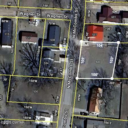 Est $166/moResidential building lot located on N. McCombs St. in Martin. Approx. 0.24 acres with approximately 105' of road frontage. Level terrain with city utilities available at the street. Convenient to downtown Martin, UT Martin, and local amenities. Lot may be purchased individually or as part of a package with adjacent parcel at 530 N. McCombs St. Buyer to verify zoning, utilities, and building requirements.