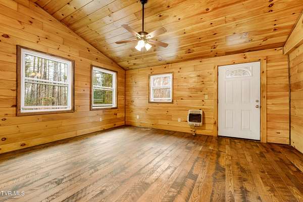 Charming rustic cabin located near beautiful Laurel Bloomery, Tennessee. Nestled in a serene mountain setting, this property offers the perfect balance of comfort, privacy, and outdoor adventure. Situated on approximately 1.99+/- acres with seasonal mountain views, the cabin provides a peaceful escape surrounded by nature, yet remains within easy reach of nearby attractions and welcoming small towns. The area is renowned for its exceptional fly fishing, hiking, and outdoor recreation. The Appalachian Trail and Gentry Falls are just minutes away, offering endless opportunities for exploration. You'll also enjoy convenient proximity to the trailhead town of Damascus, Virginia, Lake Watauga, and the charming community of Mountain City, Tennessee. Originally built in 1987 and thoughtfully modified in 2010, the cabin features warm wood interiors throughout, creating a cozy and inviting atmosphere. The open great room with vaulted ceiling is anchored by a striking floor-to-ceiling stone wall that hosts a wood stove-perfect for gathering on cool mountain evenings. A long galley kitchen provides ample space for cooking and entertaining, while two bedrooms each include private outside entrances-ideal for guests, family, or potential rental use. A separate laundry room adds convenience for daily living or guest stays. For comfort and efficiency, the cabin is equipped with propane wall heaters for instant heat. Outdoor features include Tennessee fieldstone sidewalks, a small outbuilding suitable for storage or workshop use, and a partially prepared house seat ready for expansion or future building. This property offers a wonderful sense of peace and seclusion while remaining close to some of the region's most scenic natural destinations. Whether you're seeking a private mountain getaway, a short-term rental opportunity, or a full-time retreat, this Laurel Bloomery cabin embodies the best of rustic living with endless opportunities for outdoor enjoyment. Buyer and buyer's agent to verify all information, including square footage.