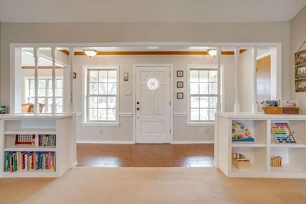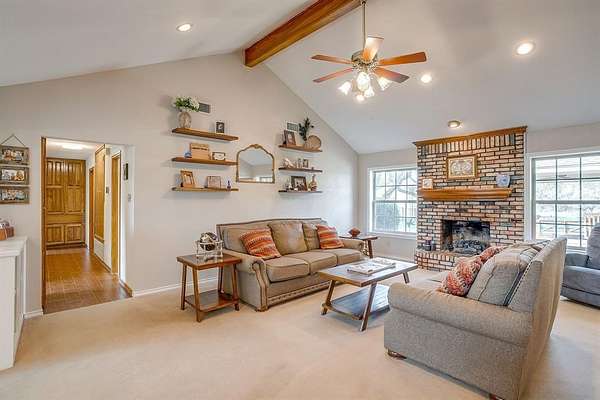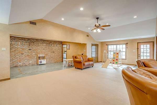 Inside, the thoughtfully designed layout features 3 spacious bedrooms and 2 full baths plus a half bath, providing comfortable living for family and guests alike. Neutral paint in the living room, dining, and kitchen areas brightens the heart of the home, creating a warm and inviting space for everyday living and entertaining. The generous living areas flow easily, offering flexibility for gatherings both large and small. A standout feature is the expansive game room--ideal for entertaining, media room, play space, or hobby area. Built-in cabinetry throughout the home adds character and exceptional storage. With an additional room tucked away, it makes the perfect work-from-home solution, offering privacy and functionality without sacrificing comfort.