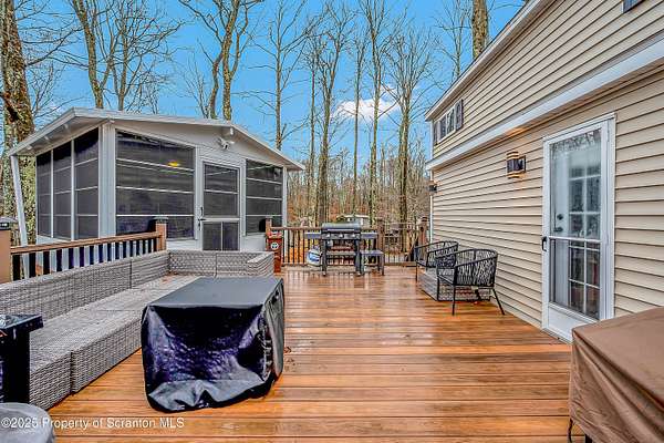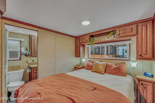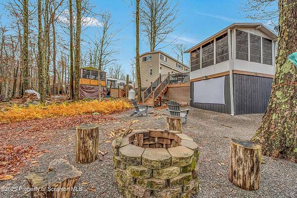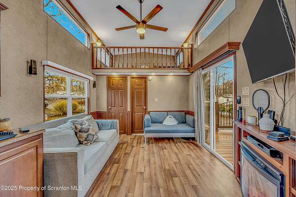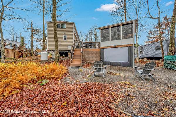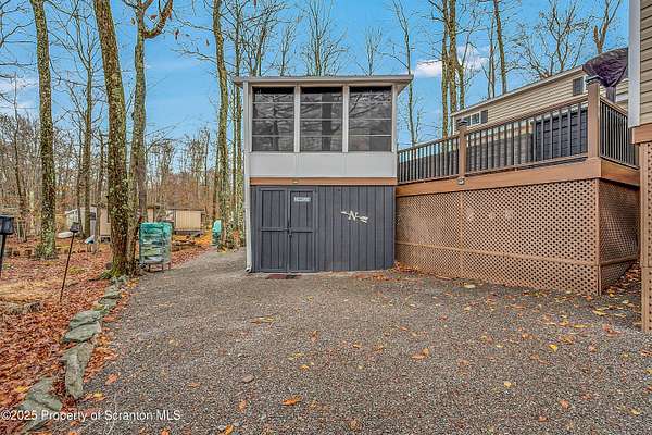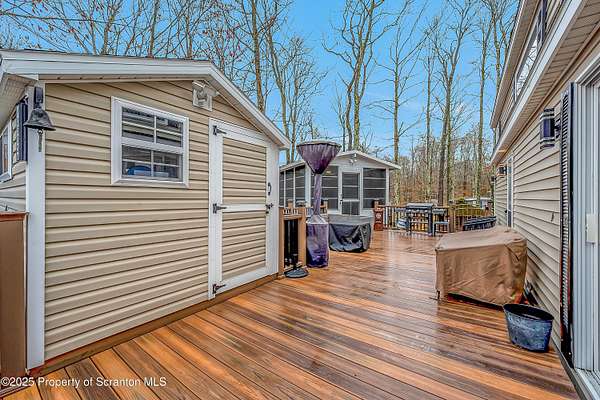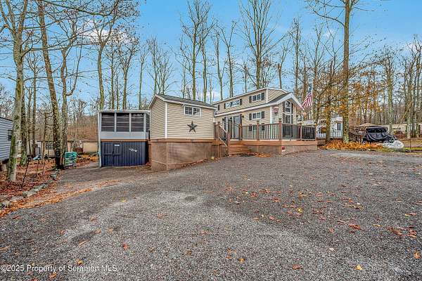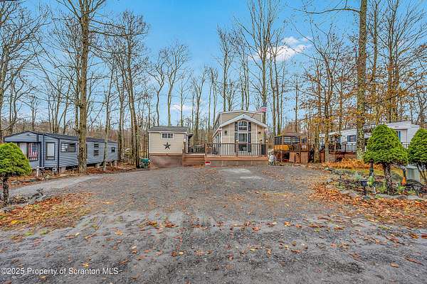 Welcome to the Woodland Section of Eagle Lake Recreation Community!Located on a beautiful pea-graveled lot, this show-stopping two-bedroom, two-bathroom double-loft park model RV offers an incredible blend of comfort, functionality, and style. The property includes a Florida room, Trex deck with gated entry, and a fully redone shed -- making it the perfect retreat for your seasonal escape.Step inside and you'll find new blinds in the living room, kitchen, and back bedroom, two water heaters, new carbon monoxide alarms, and updated lighting throughout. The kitchen features upgraded knobs and new lighting fixtures both in the ceiling and above the faucet, while the back bathroom has been beautifully updated with a new toilet, vanity knobs, and faucet. Enjoy smart TVs throughout the home, new outdoor lighting around the deck and front of the property, and a freshly reconstructed deck, front steps, and back steps -- all crafted with new, durable materials. The Florida room features a stylish new ceiling fan with color-changing lights and offers additional storage space underneath, perfect for keeping your golf cart (included!) safely stored for the winter. The shed has been completely redone inside with new flooring, paint, lighting, and sink, and even includes a washer for your convenience.This property features vinyl siding on both the shed and Florida room and comes with a clean title for the park model RV.About Eagle Lake Recreation Community:Eagle Lake is a private, amenity-filled seasonal community located in the Poconos. Residents enjoy access to two beaches, an outdoor pool, clubhouse, fitness room, sports courts, fishing, mini golf, community events, and more. The clubhouse is open year-round and offers laundry facilities and activities for ''winter warriors.''Please note: Eagle Lake Recreation Community is not zoned for full-time residential living and cannot be used as a primary residence.