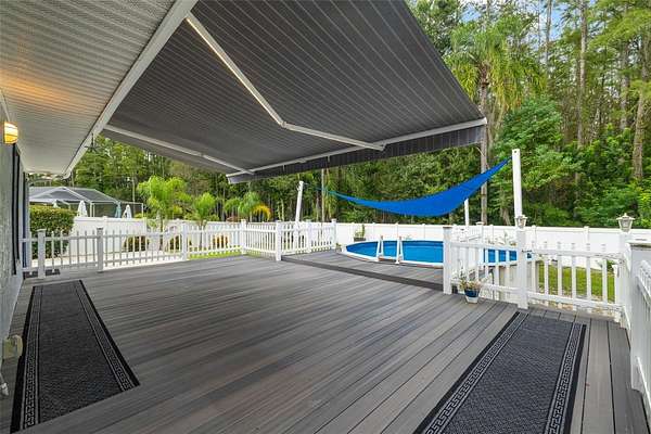 Step outside and let the fun begin! Your backyard oasis features an above-ground pool wrapped in Trex decking with glowing solar lights, perfect for evening swims or weekend get-togethers. Need shade? The retractable lighted awning has you covered--literally--whether the sun is shining or the rain is falling. With three outdoor storage closets, everything from pool toys to garden gear has a spot of its own.