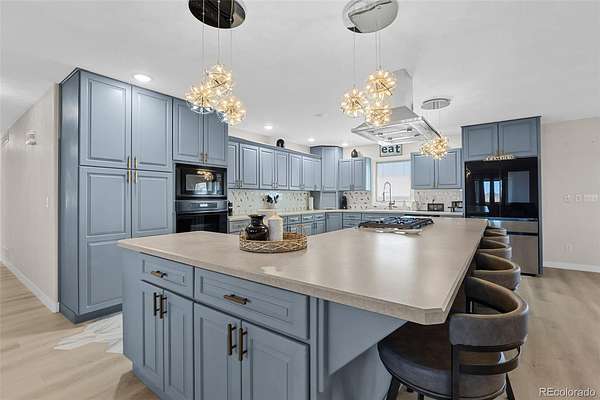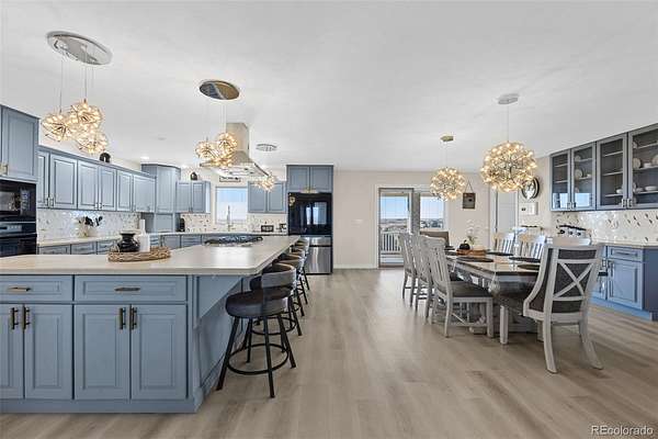 Spanning approximately 4,900 square feet, this exceptional residence features 3 bedrooms, 4 bathrooms, a dedicated office, and two spacious living areas. The main level showcases an open-concept floor plan designed for both everyday living and elevated entertaining, highlighted by expansive countertops, a generously sized kitchen, and a seamless flow into the dining area with additional built-in cabinetry. Large windows frame breathtaking mountain and plains views, filling the home with natural light and creating a true connection to the surrounding landscape.