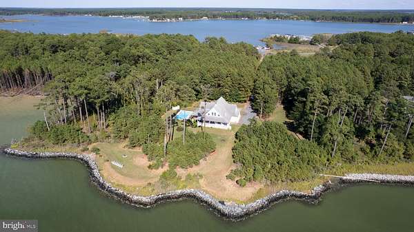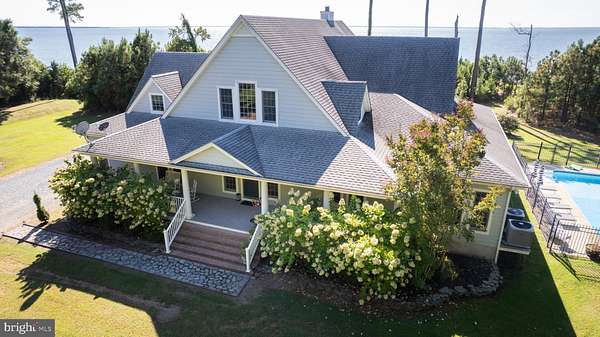 Set on 10 private acres in Dorchester County's Neck District, this 6BR/4.5BA custom-built home offers 4,500 sq. ft. of living space, a rip-rapped shoreline, and sweeping views of the Middle Chesapeake Bay. Here, every detail has been designed for comfort, entertaining, and connection with the natural beauty of Maryland's Eastern Shore. Step inside to hardwood floors and an open, traditional floor plan. The foyer leads to a waterfront family room featuring a stone fireplace with wood-burning insert and French doors opening to both a screened porch and a covered deck. The center island kitchen with breakfast bar offers abundant cabinetry, pantry space, stainless steel appliances, and double wall ovens, flowing seamlessly into an oversized breakfast room for casual gatherings. A formal dining room provides the perfect setting for elegant entertaining, while the living room adds another inviting space. The first-floor primary suite overlooks the Bay, with direct access to the covered porch, plus a walk-in and double closet. Upstairs, five spacious bedrooms and three full baths-including an en-suite-offer comfort and flexibility, enhanced by vaulted ceilings and dormer windows. Outdoor living is a highlight of this property. An inground pool and outdoor shower sit just off the screened porch, while a fire pit overlooking the Chesapeake Bay sets the stage for unforgettable evenings under the stars. The 10-acre parcel, partially wooded, offers privacy and wildlife habitat, from deer to shorebirds. Located near Ragged Point Marina, Soft & Salty--famous for homemade delicious comfort foods, and Danny's Seafood-known for its steamed shrimp, soft crabs, and local flavor-you'll enjoy both seclusion and easy access to amenities. Whether fishing in some of the best waters of the Chesapeake Bay, relaxing by the pool, or gathering around the fire pit, this home captures the very best of the Eastern Shore lifestyle. With six bedrooms, multiple living spaces, and exceptional outdoor amenities, this property also offers strong potential as a vacation rental, appealing to those seeking waterfront, privacy, and room for everyone. More than a home, it's a place to create lasting memories on the Chesapeake Bay.