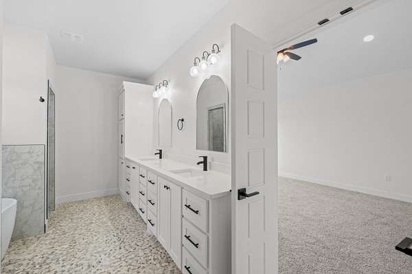 - Built-In Features, Ceiling Fan(s), Chandelier, Double Vanity, Granite Counters, High Ceilings, His and Hers Closets, Kitchen Island, Open Floorplan, Vaulted Ceiling(s), Wired For Data