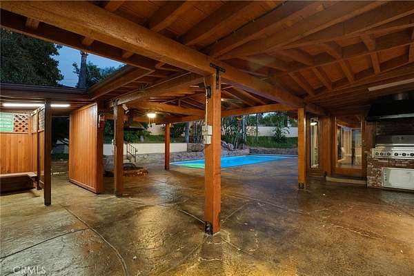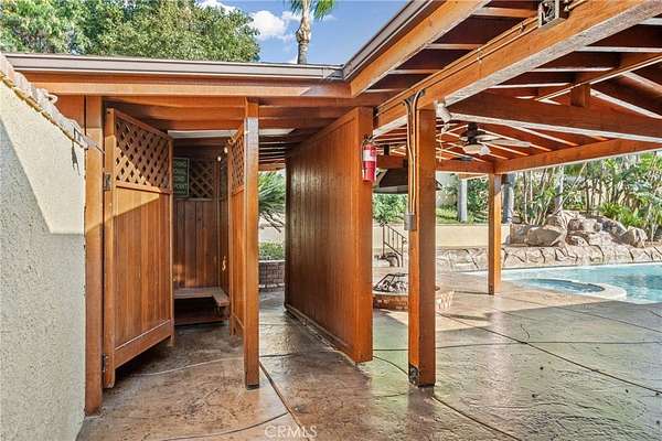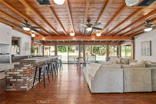 Experience resort-style living on this one-of-a-kind Riverside horse property estate, featuring a main home, guest house, separate apartment, and expansive shop, perfect for multigenerational living, entertaining, or income potential. The main residence is designed for comfort and hosting, offering a family room with built-in bar and a unique kitchen with indoor BBQ setup. Step outside to your private backyard retreat, complete with a pool and spa featuring a waterfall, color-changing lighting, Baja shelf, solar heating, and automated cover. Entertain effortlessly with a fully equipped outdoor kitchen with BBQ, refrigerator, gas fire pit, and multiple outdoor bathrooms conveniently located throughout the property. Unwind in your own private sauna designed for 6-8 people, creating a true at-home resort experience. Beyond the lifestyle features, this property is built for functionality and versatility. It includes a thriving orchard with a variety of fruit trees and a garden utilizing “bastard trenching” irrigation with well water, ideal for sustainable living. Designed with serious utility in mind, the property features over 100 fully paid-off solar panels, a natural gas backup generator, three septic systems, extensive outdoor water connections, and multiple air compressors throughout. For car enthusiasts, business owners, or hobbyists, the estate offers an incredible 25 garage spaces (including a lift), along with RV parking and additional covered parking with a metal overhang. The property is fully improved with concrete throughout and secured by an automated gated entry for privacy and convenience. Combining luxury amenities, income potential, and unmatched functionality, this rare property offers endless possibilities in a prime Riverside location.