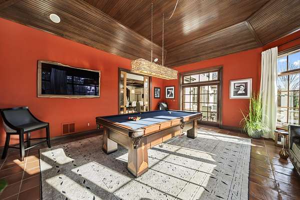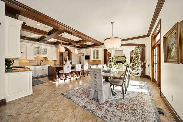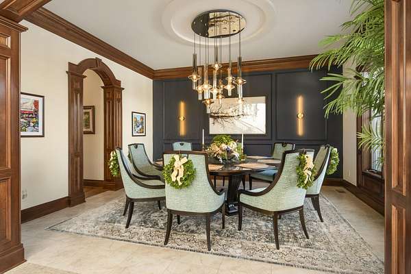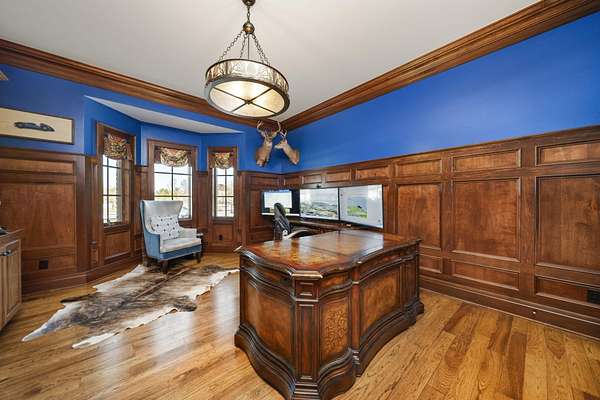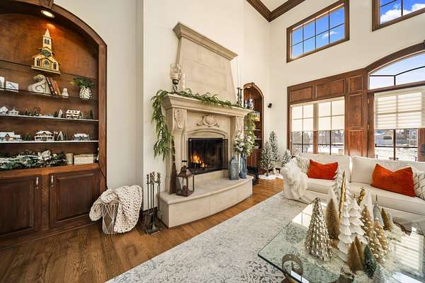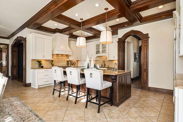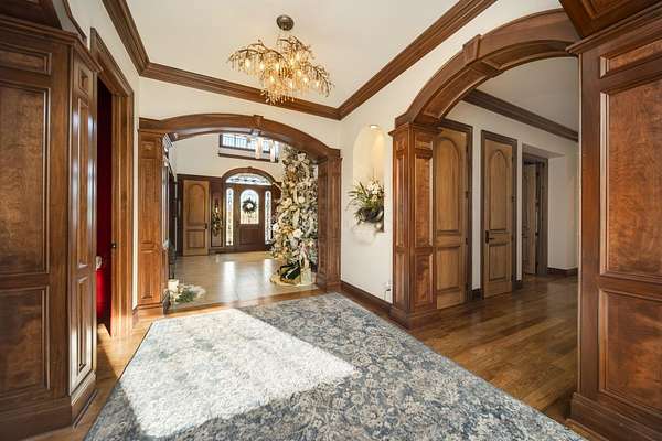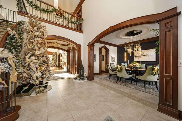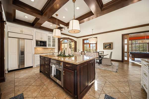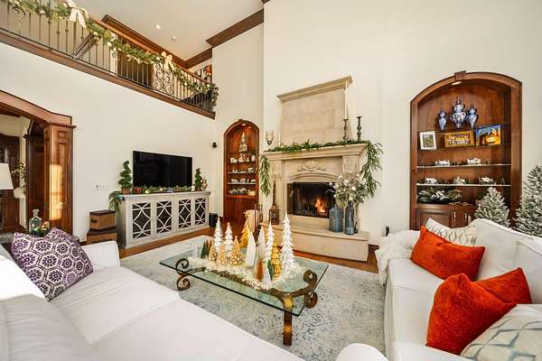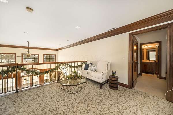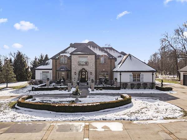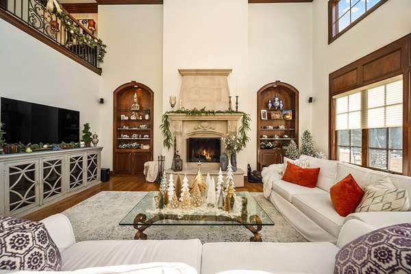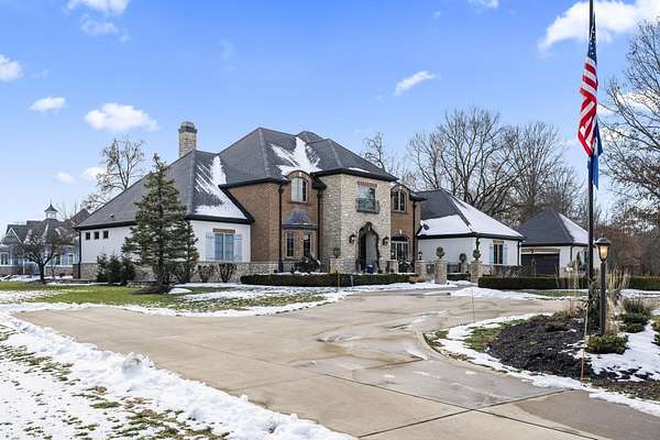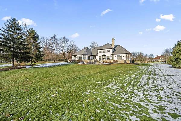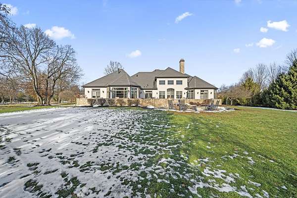Truly an exquisite estate set on 3.46 acres within the private, gated community of Hoover Gate. This remarkable residence offers 10,000+ square feet of timeless and refined living space. Featuring five bedrooms, five and a half baths, a three-car attached garage, and an additional two-car detached garage, the home blends grand scale with thoughtful design. A dramatic two-story foyer welcomes you with a stunning wrought-iron bridal staircase. The main level includes a private study with custom built-in bookcases, a formal dining room, and an expansive great room highlighted by floor-to-ceiling windows and a limestone fireplace. The chef's kitchen features Wolf ovens, a Sub-Zero refrigerator, a large center island, refinished cabinetry, and granite countertops, flowing effortlessly into a hearth room with fireplace, a bourbon and wine room, and a four-season sunroom designed for entertaining. The first-floor owner's suite serves as a serene retreat with an updated spa-like en suite bath, two walk-in closets, new carpeting, with it's own access to the back terrace. A well-designed mother-in-law suite with kitchenette and full bath completes the main level. Upstairs, two additional bedroom suites offer walk-in closets and private baths. Designed for entertaining, the lower level features custom wine cabinetry, a fully equipped wine bar, a spacious game room, and an additional bedroom with full bath and cedar closet. An unfinished workshop area with separate entry provides the opportunity for future expansion. Outdoor living is equally impressive with a limestone-capped terrace and fire pit. Recent updates include the owner's en suite bath, roof, and fresh interior and exterior paint. Meticulously maintained, this exceptional home offers timeless architecture, exceptional craftsmanship. An exquisite estate offering a level of privacy and sophistication that can only be fully understood through an in-person experience. Ideally located near Hoover Reservoir.
