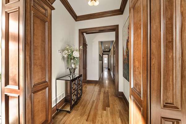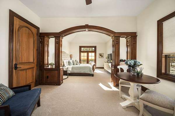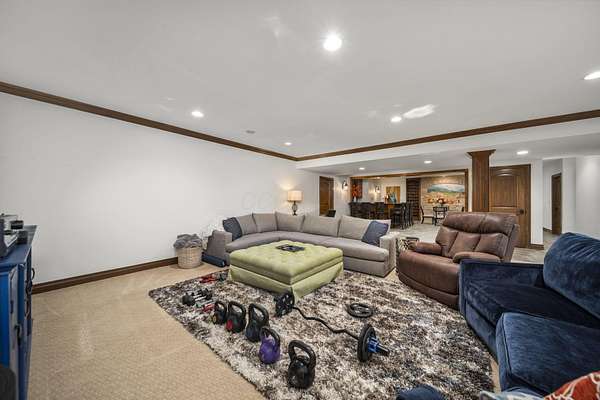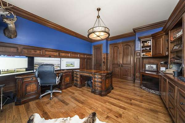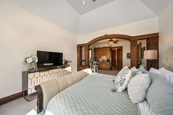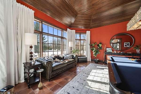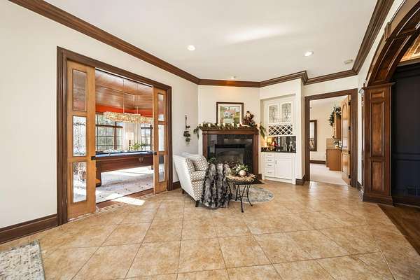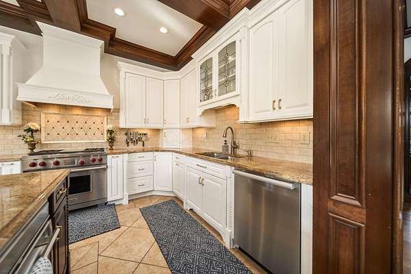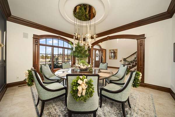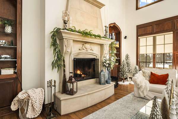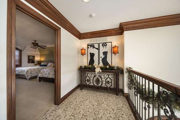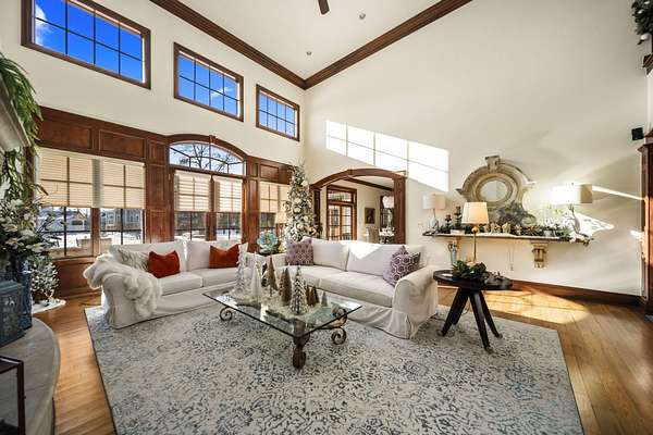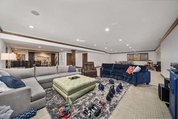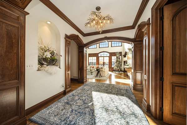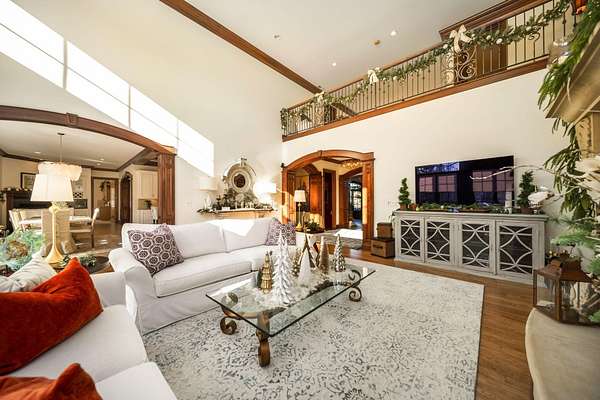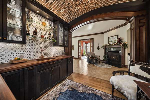 Truly an exquisite estate set on 3.46 acres within the private, gated community of Hoover Gate. This remarkable residence offers 10,000+ square feet of timeless and refined living space. Featuring five bedrooms, five and a half baths, a three-car attached garage, and an additional two-car detached garage, the home blends grand scale with thoughtful design. A dramatic two-story foyer welcomes you with a stunning wrought-iron bridal staircase. The main level includes a private study with custom built-in bookcases, a formal dining room, and an expansive great room highlighted by floor-to-ceiling windows and a limestone fireplace. The chef's kitchen features Wolf ovens, a Sub-Zero refrigerator, a large center island, refinished cabinetry, and granite countertops, flowing effortlessly into a hearth room with fireplace, a bourbon and wine room, and a four-season sunroom designed for entertaining. The first-floor owner's suite serves as a serene retreat with an updated spa-like en suite bath, two walk-in closets, new carpeting, with it's own access to the back terrace. A well-designed mother-in-law suite with kitchenette and full bath completes the main level. Upstairs, two additional bedroom suites offer walk-in closets and private baths. Designed for entertaining, the lower level features custom wine cabinetry, a fully equipped wine bar, a spacious game room, and an additional bedroom with full bath and cedar closet. An unfinished workshop area with separate entry provides the opportunity for future expansion. Outdoor living is equally impressive with a limestone-capped terrace and fire pit. Recent updates include the owner's en suite bath, roof, and fresh interior and exterior paint. Meticulously maintained, this exceptional home offers timeless architecture, exceptional craftsmanship. An exquisite estate offering a level of privacy and sophistication that can only be fully understood through an in-person experience. Ideally located near Hoover Reservoir.