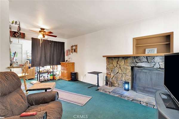 Inside the fenced residence, you'll find an open living area with a stone fireplace, spacious kitchen with lots of storage, breakfast counter, two bedrooms, and a full bath. The home is livable, with lots of potential for your personal upgrades. Utilities include propane heat, septic and public water.