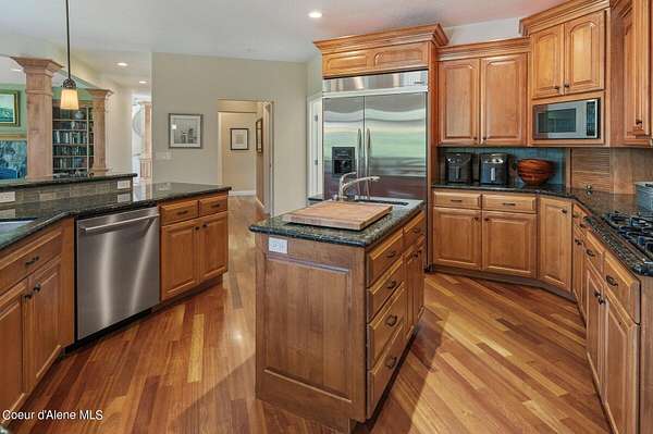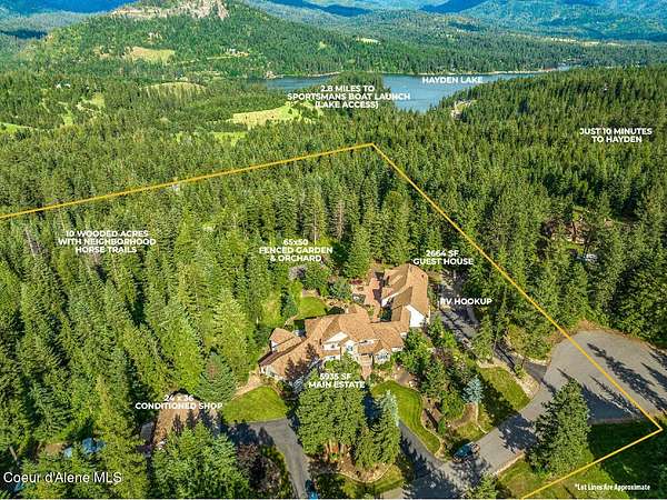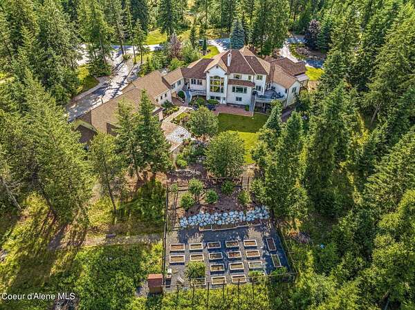 THE ULTIMATE NORTH IDAHO DREAM PROPERTY! SELF-SUFFICIENT, PRIVATE AND PERFECT FOR MULTI-GENERATIONAL LIVING. Tucked behind gates on nearly 10 wooded acres, this executive estate offers a rare blend of seclusion and convenience, just minutes from golf, dining, shopping, and Hayden Lake access. With 8,599 sq ft of total living space, it includes a 5,935 sq ft main residence with 6 beds and 5.5 baths, plus a spacious 2,664 sq ft 1 bed/1 bath guest home. Designed for independence and comfort, the property features two potable water sources, dual backup generators, rainwater irrigation, a garden, orchard, conditioned shop, RV hookups, root cellar, food storage, and more. Multiple high-speed internet options allow for working remotely with ease. A one-of-a-kind opportunity to live the North Idaho lifestyle to the fullest.