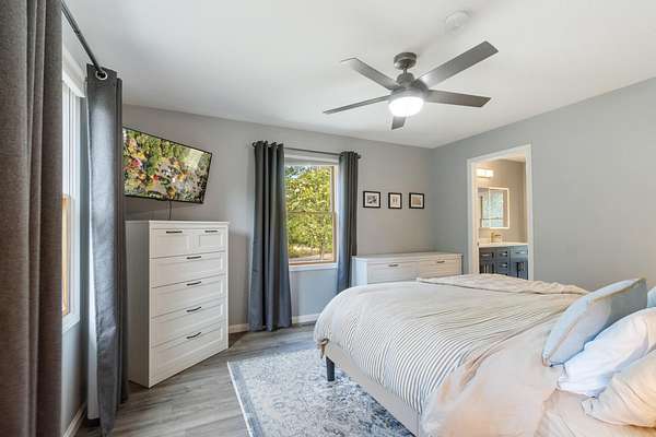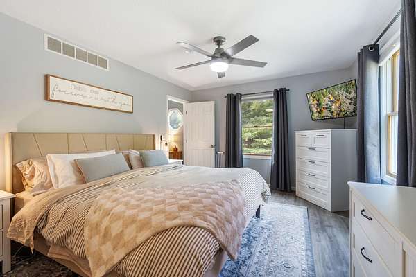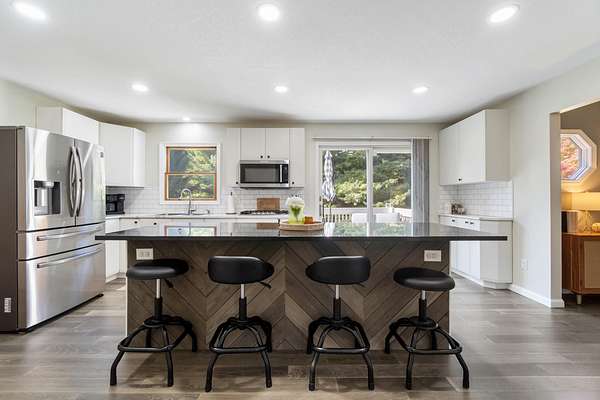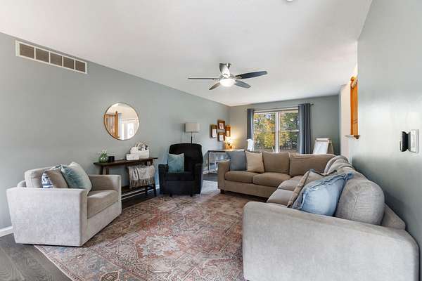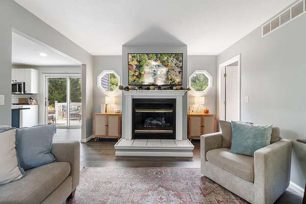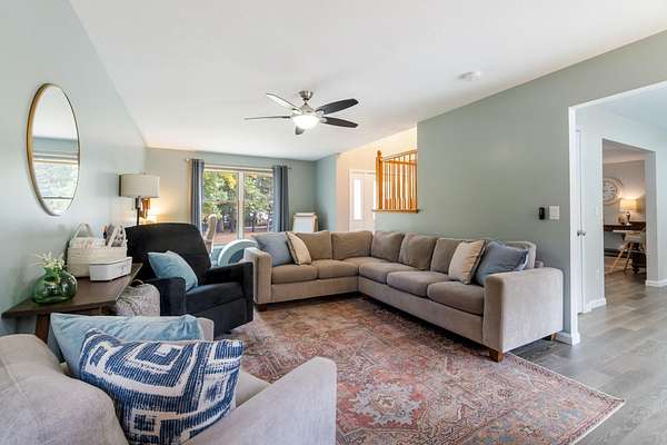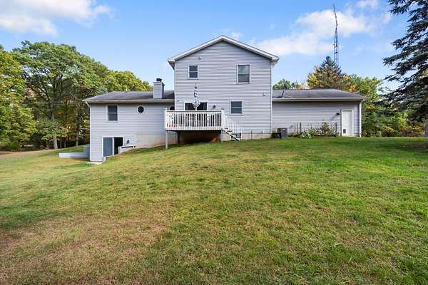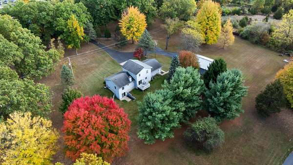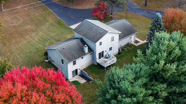 When the trees open up at the end of your private drive, it hits you-this isn't just another house. It's the one. 5 acres wrap around this beautifully updated home, where peace, privacy, and perfection meet. In the fall, the colors put on a show you'll never get tired of. Inside, a spacious open layout welcomes you with engineered hardwood floors and a kitchen made to impress-quartz countertops, granite island, built-in double ovens and stainless steel appliances. The gas fireplace provides the perfect ambiance for the living room. Your main-floor primary suite is pure luxury: heated tile floors, a deep soaking tub, rainhead shower, dual sinks, and even a high-tech bidet toilet you'll wonder how you ever lived without. Upstairs features two spacious bedrooms and a full bath with a tub. Downstairs, the walk-out basement gives you extra living space, vinyl plank flooring, and a perfect home office or gym setup. Need storage? You've got an attached garage and a 30x40 pole barn with gas and electric. Located just around the corner from the prestigious Grande Golf Club with easy access to the main highway. This home doesn't just check the boxes. It creates a lifestyle. Welcome home.