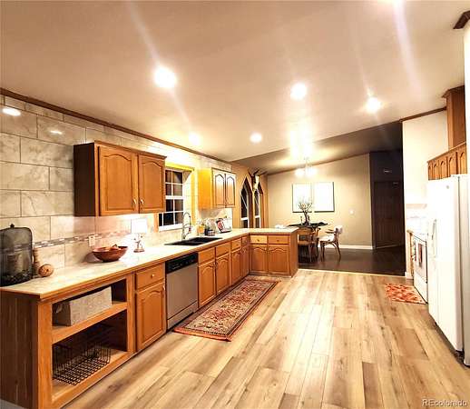 Discover the perfect blend of mountain tranquility and practical functionality on this 5-acre homestead. This open-concept, one-level ranch provides a spacious, inviting atmosphere with 4 bedrooms and 3 full baths. A separate office offers the ideal space for remote work, while the master suite presents panoramic views of Pikes Peak to start your day. Cozy up in one of two distinct living areas, each featuring its own wood-burning fireplace to ward off the winter chill. The large kitchen is a canvas for your culinary vision, with extensive oak cabinetry and a beautiful ceramic tile backsplash that extends to the ceiling. The formal dining area is a sun-drenched space, offering stunning views of the Wet Mountains through its cathedral windows. This property is exceptionally well-equipped for hobbies and animal care. The fully fenced grounds include a 2-stall barn with lights and electricity, a separate hay storage barn, and an additional loafing shed. The property also features a large garage/workshop with a heater, a separate two-car drive-through garage for vehicles or toys, plus additional storage shed. For your furry friends, a special dog room with an attached fenced run provides a dedicated space. Conveniently located just minutes from historic downtown Florence and 20 minutes from Lake Pueblo, you can enjoy rural seclusion while remaining close to all the amenities you need. The 10,000-gallon cistern for the home provides reliable water infrastructure. This unique property offers unmatched potential—come and explore all the possibilities today!