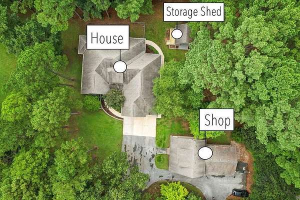 First time on the market, one owner, custom home within a wooded sanctuary, a three car garage w/ three buildings on Fayetteville's Wyman Road on over 2 acres, this expansive 2,900 sq ft custom home is perfect for multi-generational living. With two primary suites and a third bedroom, plus an open floor plan connecting the gourmet kitchen and living area with optional formal dining room/office. The large sun-room provides additional area to relax and enjoy nature. A second building with a spacious 2,100 sq ft insulated/wired shop, built with the same high-quality materials, offers endless possibilities--convert into a guest suite, studio, or workshop. It also includes three-car garage for a total of 6 car garage spaces in total on site. Additionally, a third detached insulated/wired, 250 sq ft cottage-shed offering ample storage. Great space for extended family, a home office, or studio/shop, this home adapts to fit contemporary living. Town and Country living within minutes from the University of Arkansas.