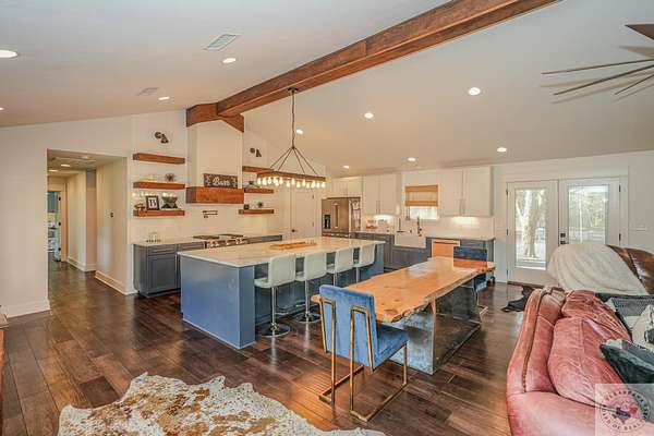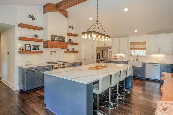 This is a rare opportunity to own 17+ acres and a beautiful home within the city limits of Texarkana, Arkansas. Owning this property offers the perks of a homestead exemption, agricultural exemption AND potentially not paying Arkansas state income tax! This property has most everything that our Texarkana natives know to be a TRUE WIN! This 6 bedroom, 4.5 bath home was originally about 1800 square feet. In 2018 that home was completed gutted and remodeled with another 1600 square foot being added on at that time. This incredible home is essentially still a new construction! It offers 2 great primary bedroom options, with 4 additional bedrooms, one currently being used as a game room/entertainment area that could also be your home office! The wide open kitchen and living area is the perfect spot to entertain a huge family or group of friends. Outside you'll find plenty of room to explore, with 5 cleared acres and 12 wooded, you are sure to see deer passing through from your back porch. The front yard has an in-ground sprinkler system to keep your yard green in those warmer months. Don't miss the open shower in the laundry room thats perfect for washing the pets or hosing off the kids after they explored the creek! This home has been well maintained and is move in ready for the next owners!
