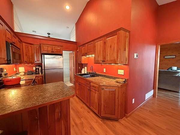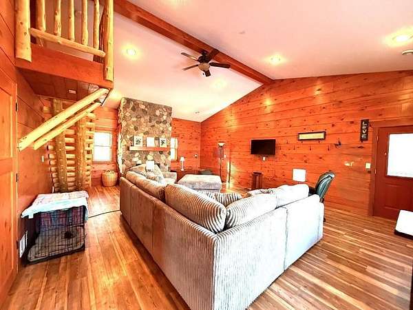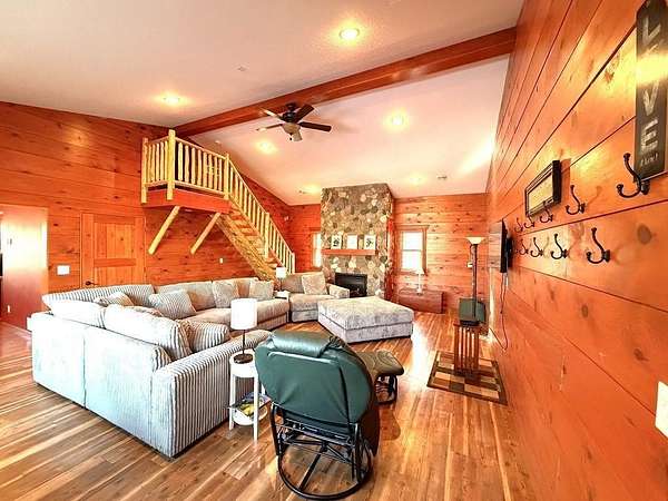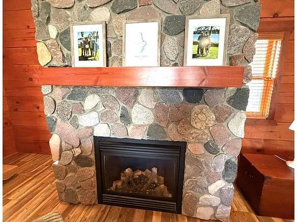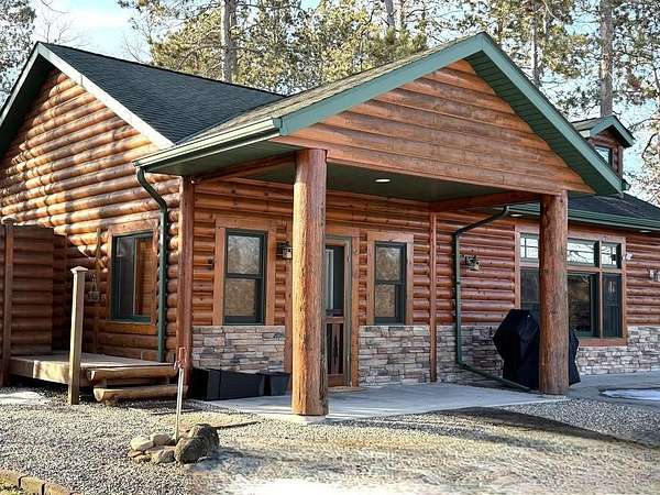 Experience the best of lakeside living on Boot Lake with this beautifully designed, year-round cabin set on 1.79 acres and 173 feet of pristine, natural sand shoreline—perfect for swimming, relaxing, and making lasting memories. Thoughtfully crafted with warm, inviting décor, this turnkey retreat features a custom kitchen with quality cabinetry, a spacious family room anchored by a stunning stone gas fireplace, and a main-level bedroom complemented by a stylish ¾ bath with a large walk-in tiled shower. A charming log staircase leads to a cozy flex room. Step outside to enjoy the expansive lakeside patio and convenient outdoor walk-in shower, perfect after a day on the water. With a gradual walk for easy access, dock included, nearby recreational trails, and just minutes from Itasca State Park, this exceptional property offers the perfect blend of comfort, recreation, and natural beauty.