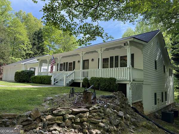 Don't let this hidden gem pass you by! This well maintained 3 bedroom 2 bath home is calling your name. Tucked away on 2.32 acres with a creek running the property line this is your own slice of heaven. It's private, peaceful and tranquil. Rocking chair front porch welcomes you in. Huge kitchen with stained cabinets and breakfast area. Separate Dining Room that could be used as an office or formal living room. One bedroom and full bath located on the main level. Beautiful sunroom area leads outside to the massive deck where you can enjoy morning coffee and watch the wildlife in the backyard. Downstairs you'll find 2 oversized bedrooms and a full bath as well as the family room. New roof and hvac unit in 2025. Updated Windows and Septic recently pumped. 3 car garage and outbuilding. Separate gated driveway for easy access to backyard. Approximately 20 minutes from Helen. The possibilities with this home are endless. Come see your new North Georgia home today.