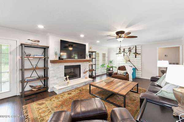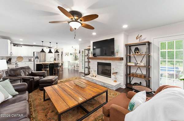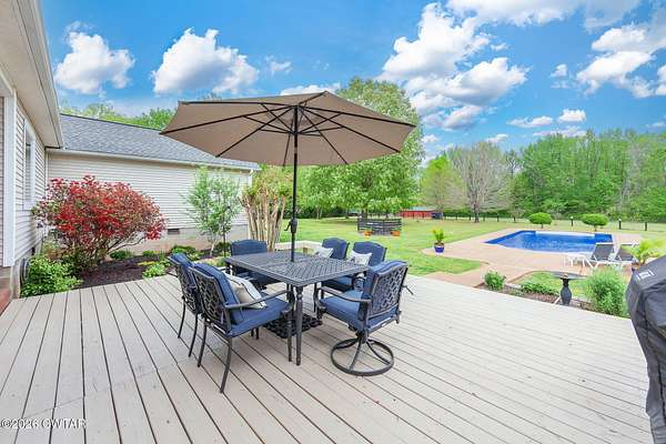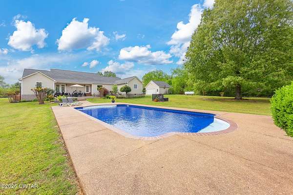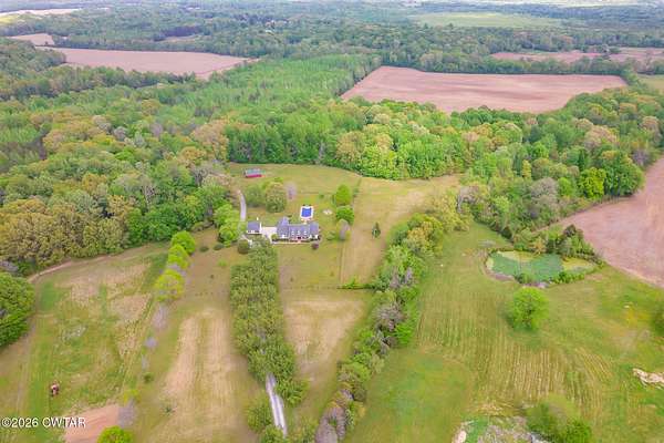 Welcome to a truly one-of-a-kind property in Madison County sitting on 67 acres, featuring a completely updated modern farmhouse, pristine farmland, wooded acreage, fenced pastures for livestock, a stable barn, and a detached garage. As you drive down the Bradford Pear-lined lane to the gated entrance, you are welcomed by an inviting front porch and a home that has been renovated from top to bottom. Inside, you will love the open-concept living, dining, and kitchen areas, all featuring beautiful hardwood floors throughout. The home offers a functional split floor plan with spacious bedrooms. Step out the back door to a deck overlooking a beautiful pool, perfect for family gatherings and entertaining. The backyard also includes a custom fire pit area, generous yard space, and is adjacent to the orchard and garden areas. Additionally, the property features a two-car detached garage, perfect for extra storage or a hobbyist. Continuing down the gravel driveway, you will find the stable barn and fenced pasture land, fully equipped for livestock or horses, along with a metal barn ideal for farm equipment. Toward the back of the property, you will discover 31 acres of pristine farmland, perfect for agriculture, recreation, or an income-producing crop. Call Bailey Bell for a showing or more information:
